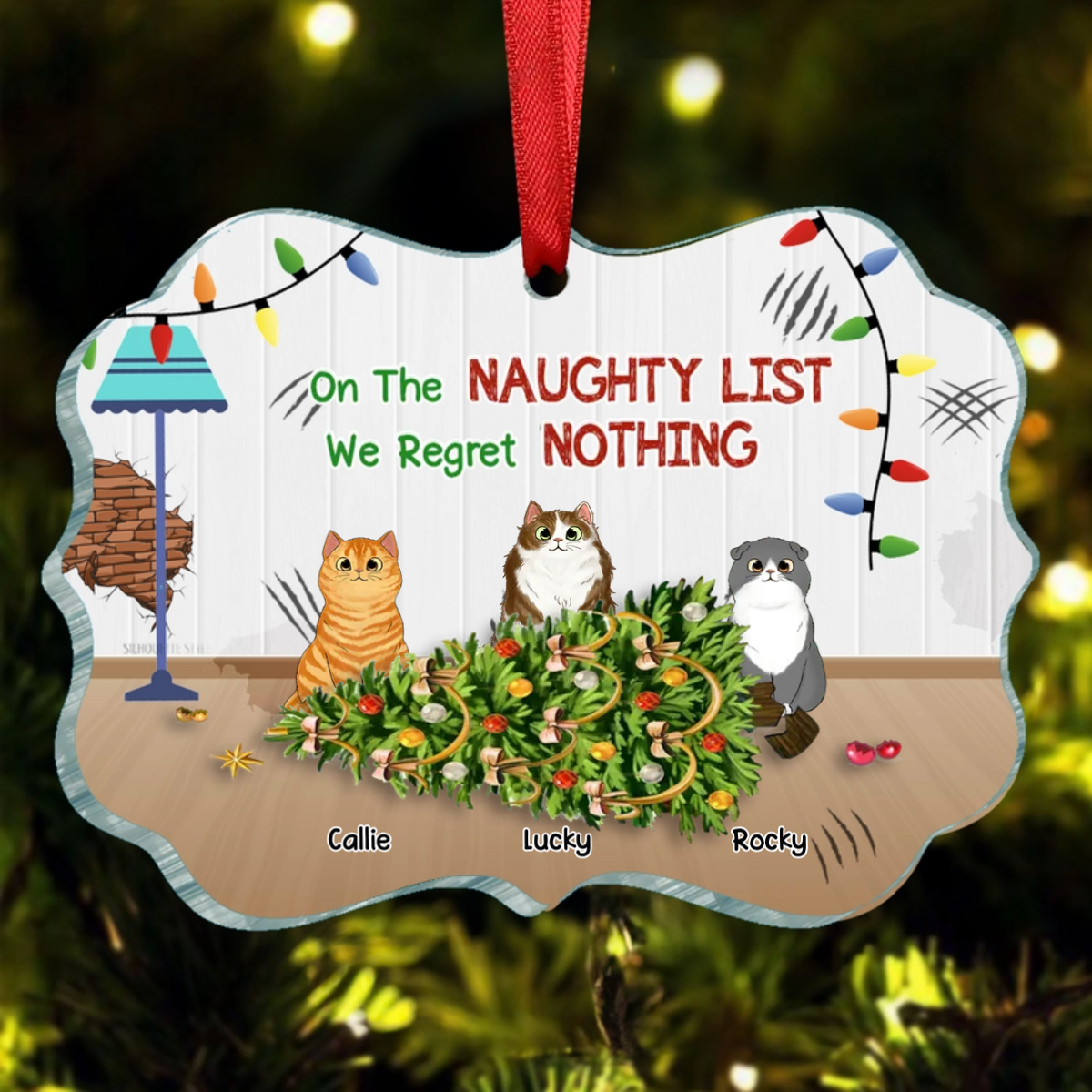 Naughty Cats Regret Nothing Personalized Christmas Ornament