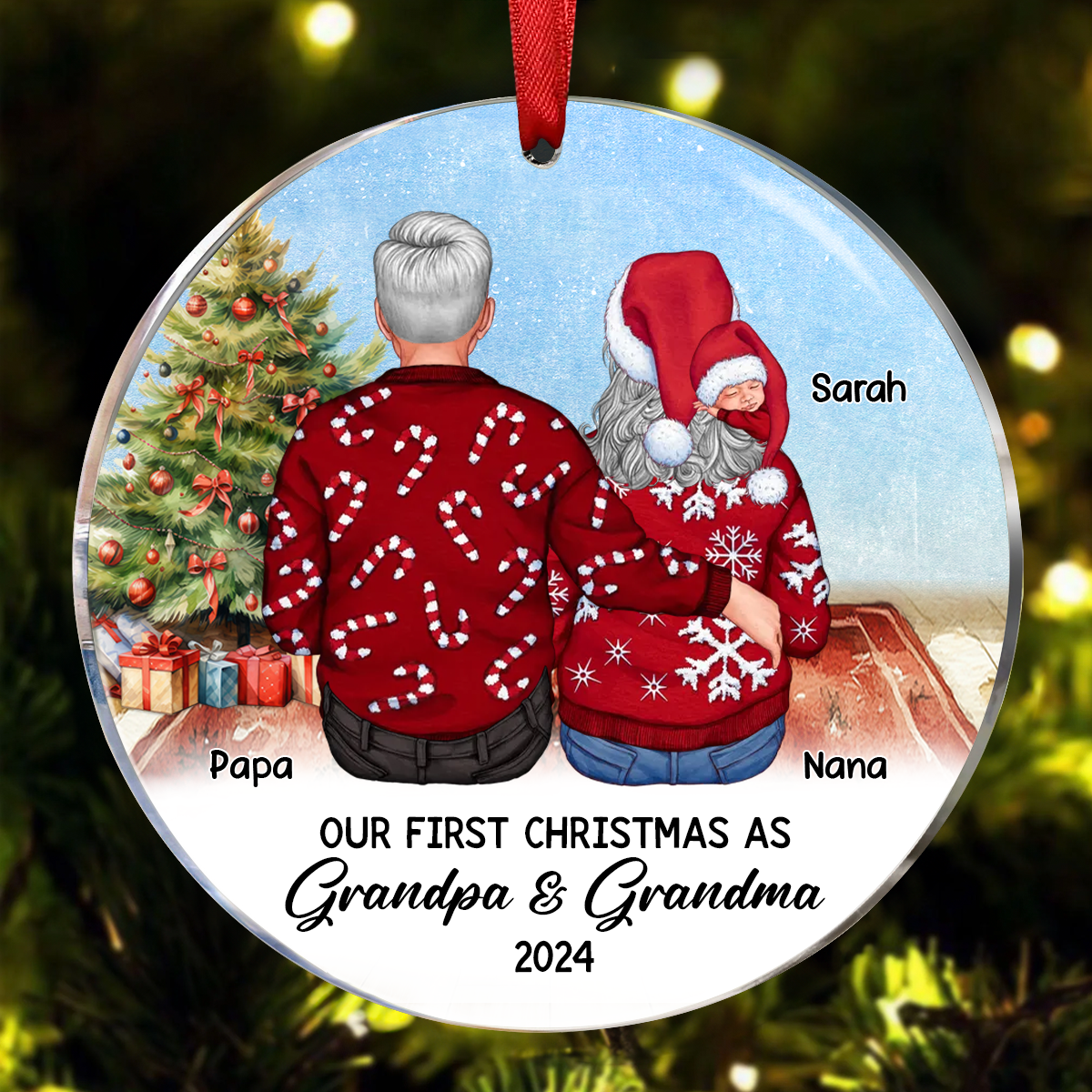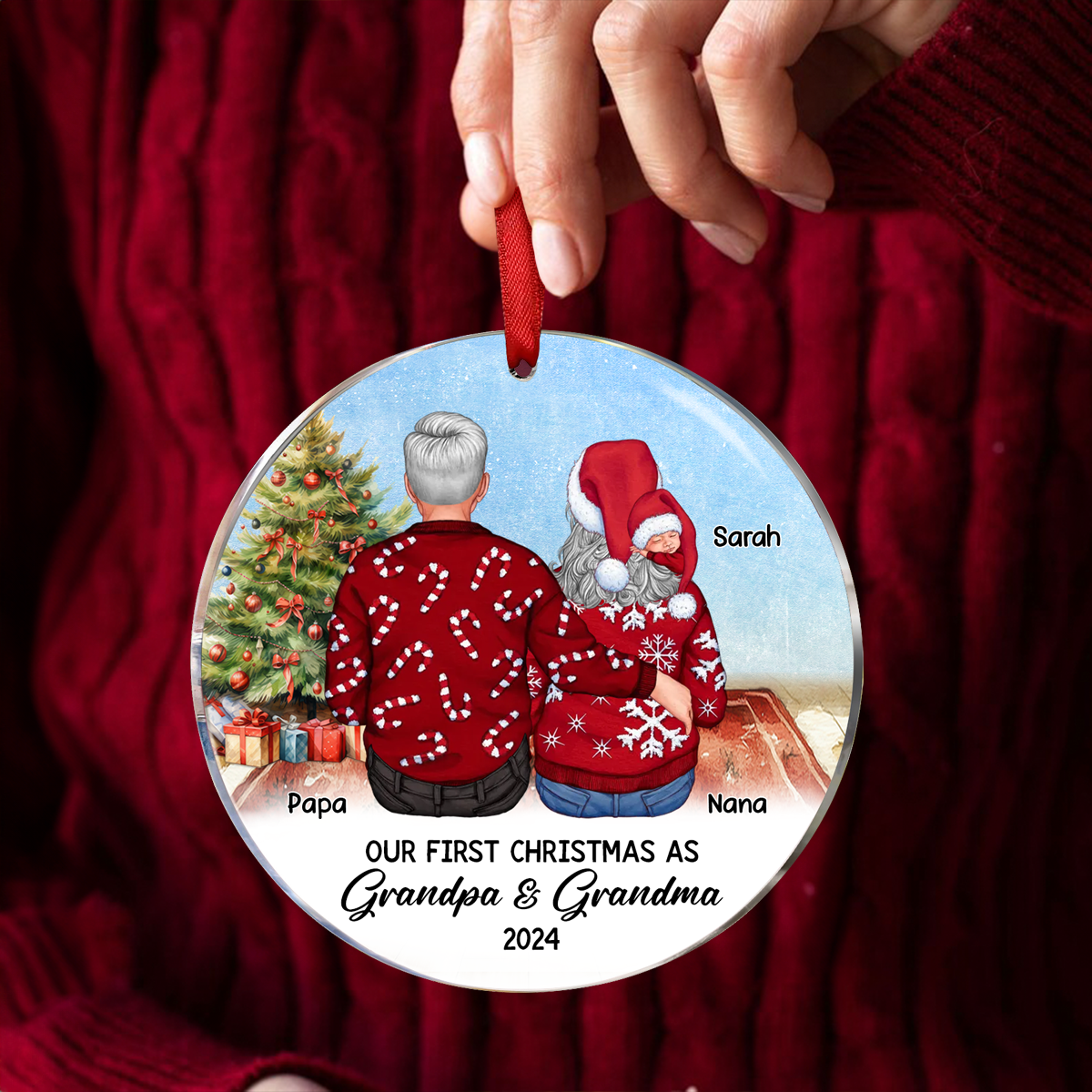Our First Christmas As Grandma & Grandpa Personalized Circle Acrylic Ornament