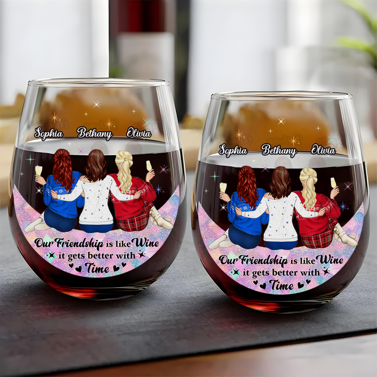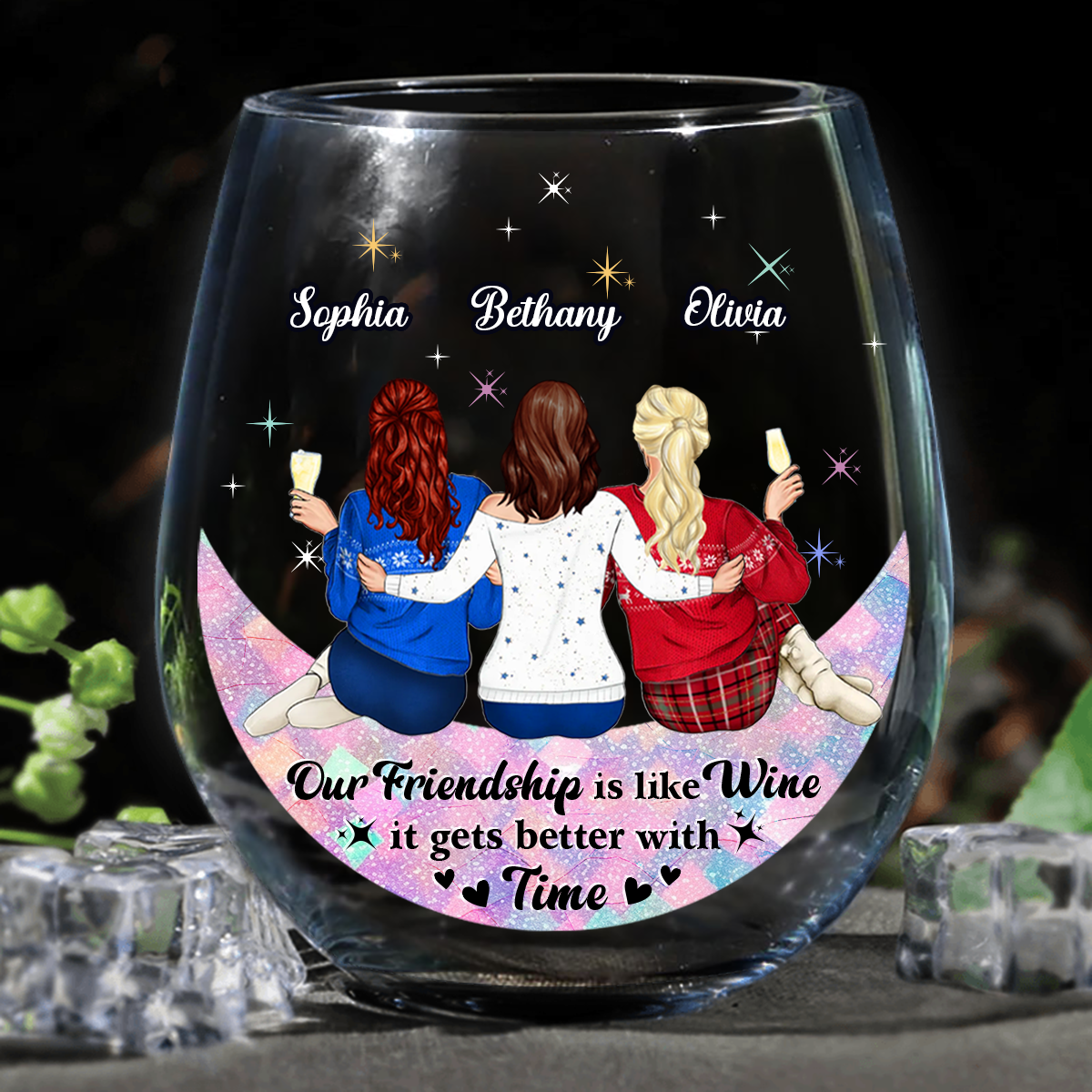 Our Friendship Is Like Wine It Gets Better With Time - Personalized Stemless Wine Glass