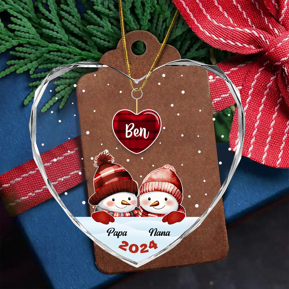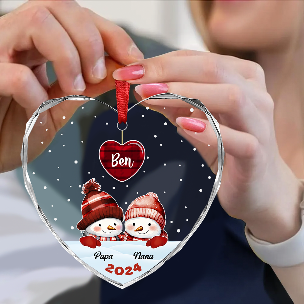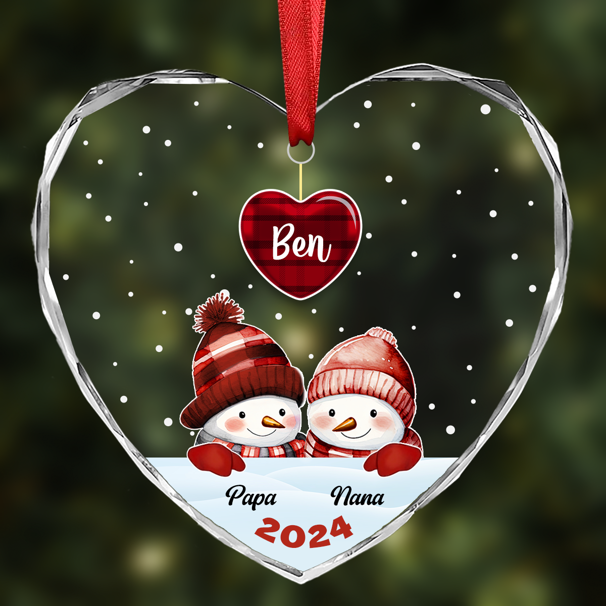 Papa Nana Snowman Christmas Grandparents - Personalized Heart Shaped Acrylic Ornament