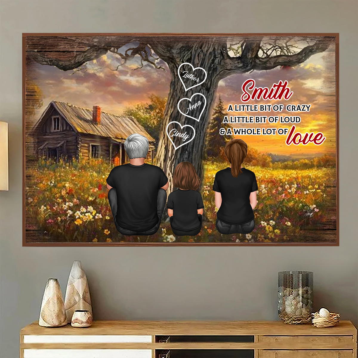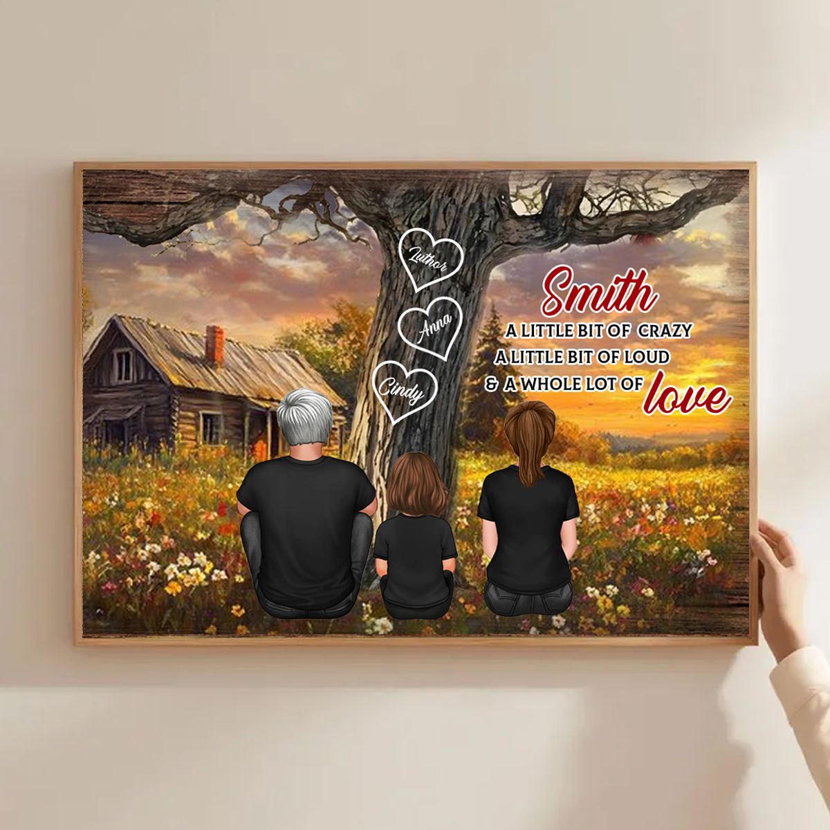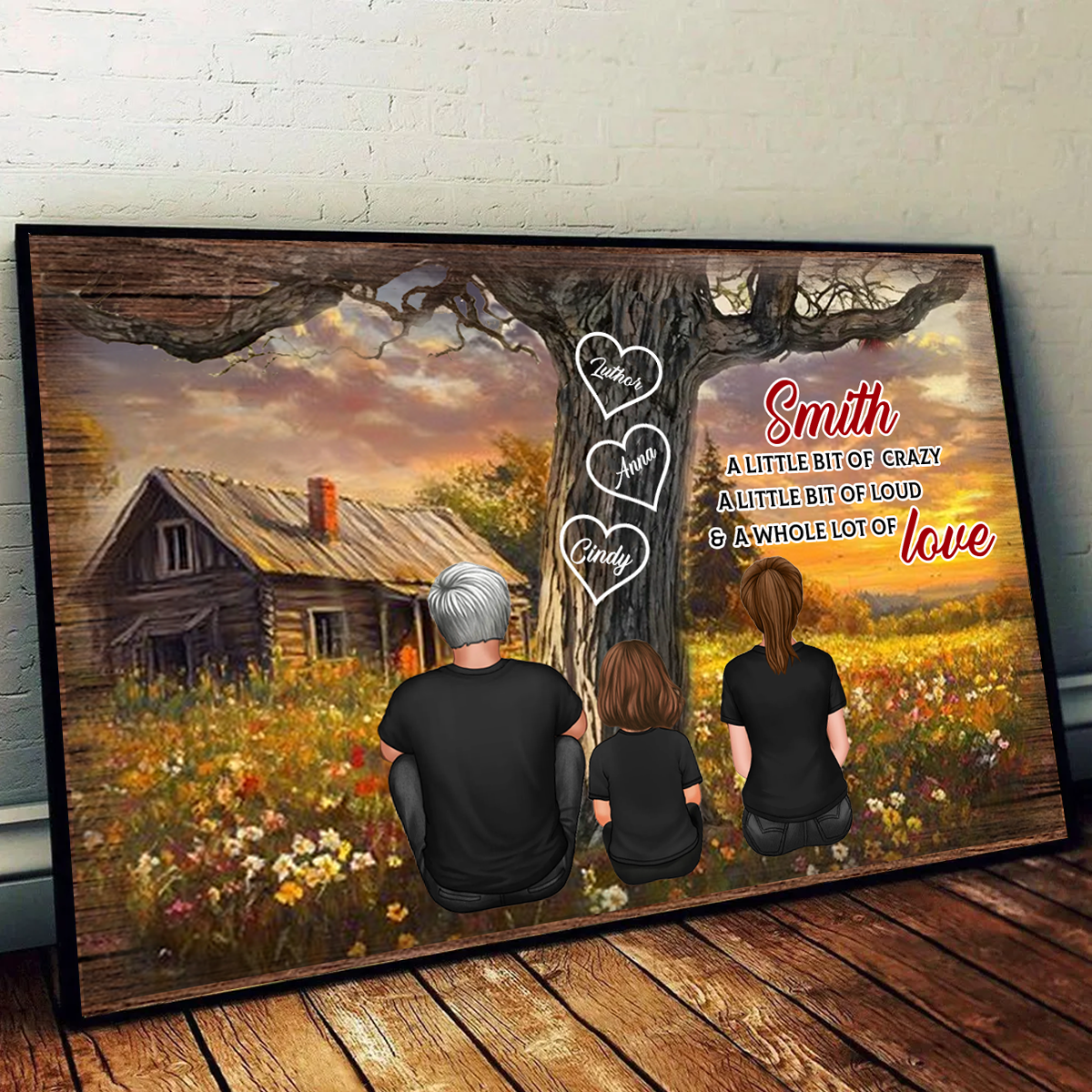 Personalized Family Sitting Back View Tree Farmhouse Poster, Wall Art Decor, Family Gift
