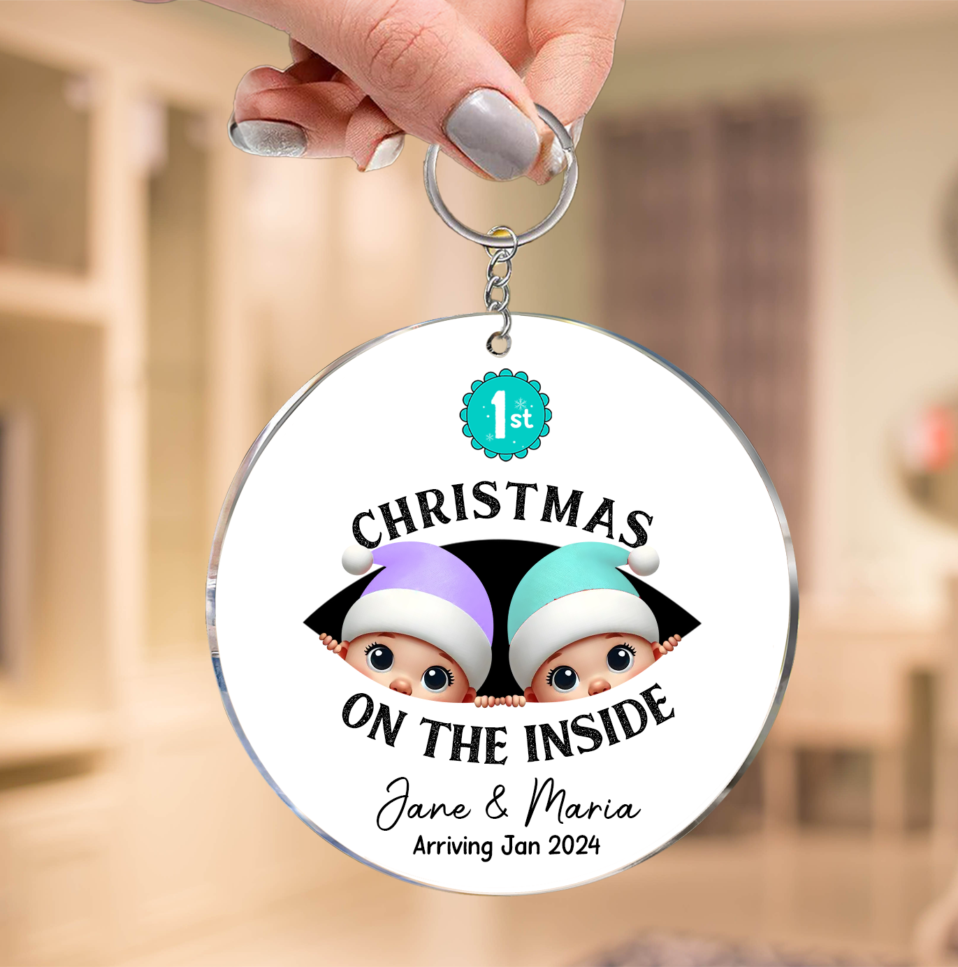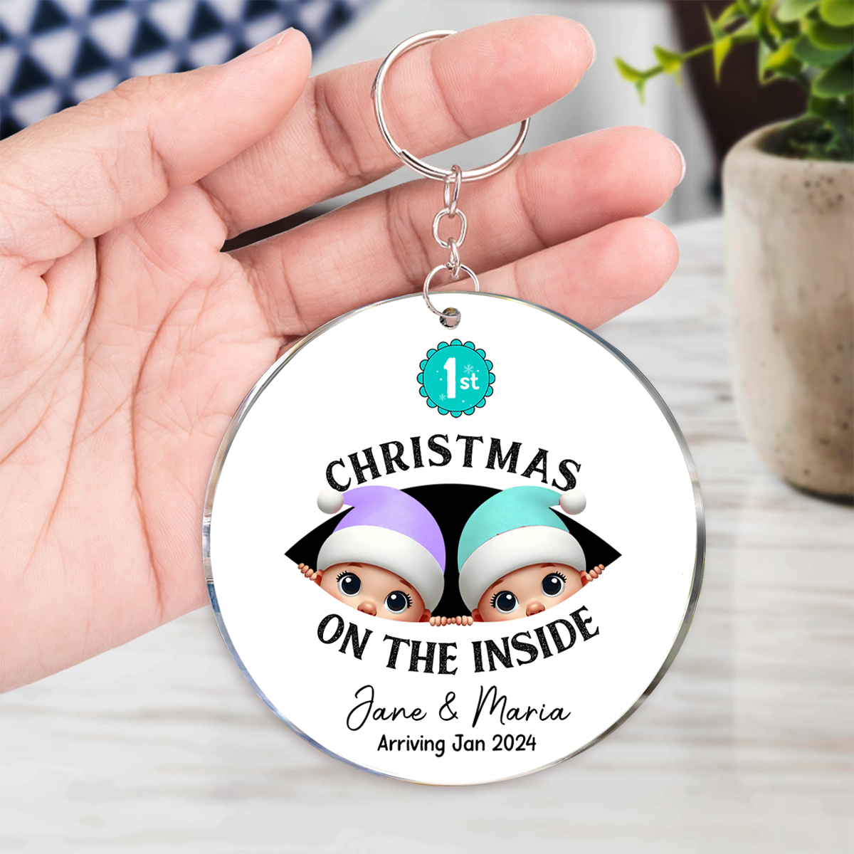 Personalized Twins Baby's First Christmas On the Inside Acrylic Keychain, Custom Pregnancy Reveal Acrylic Keychain, Expecting Parents