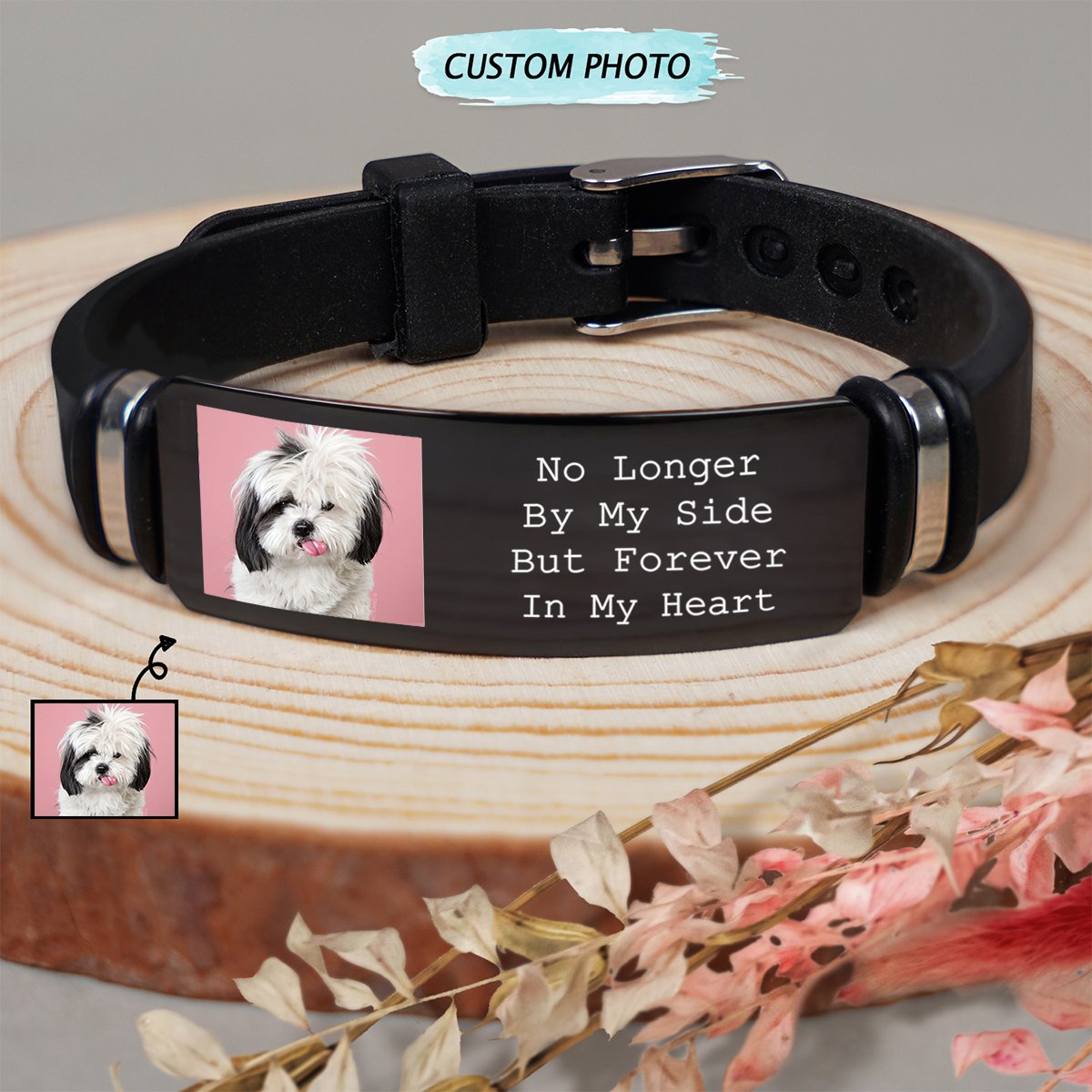Pet Lovers - Custom Photo Forever In My Heart - Personalized Engraved Bracelet