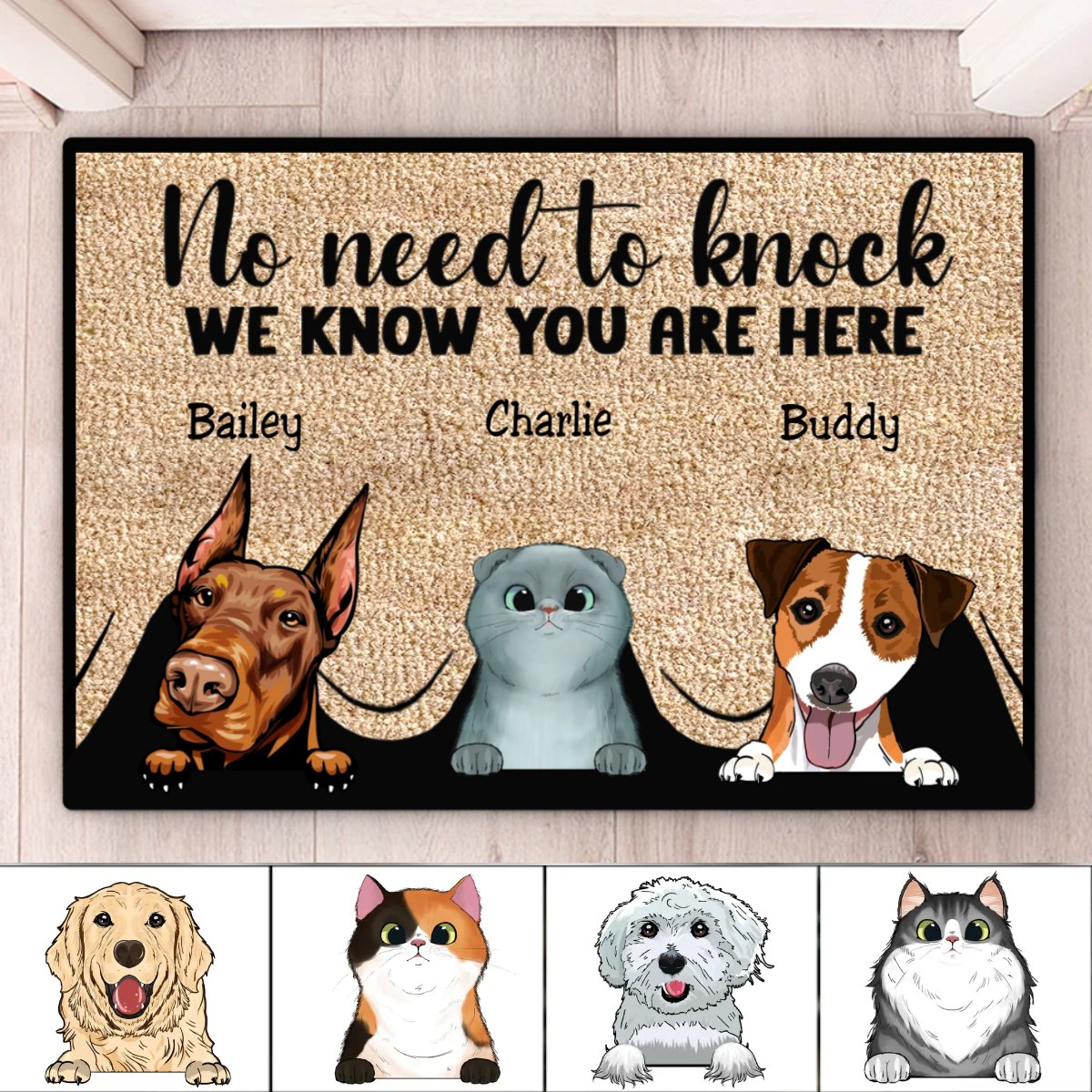 Pet Lovers - No Need To Knock We Know You're Here - Personalized Doormat