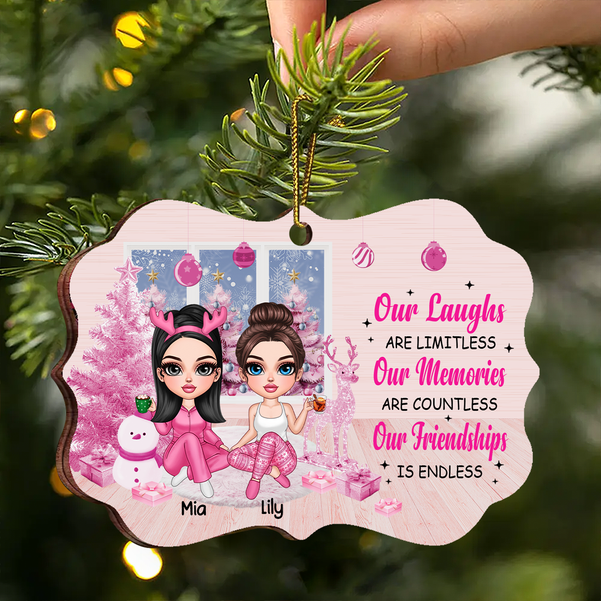 Pink Window Christmas Tree Besties Sisters Personalized Christmas Ornament