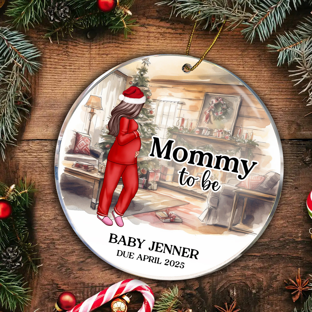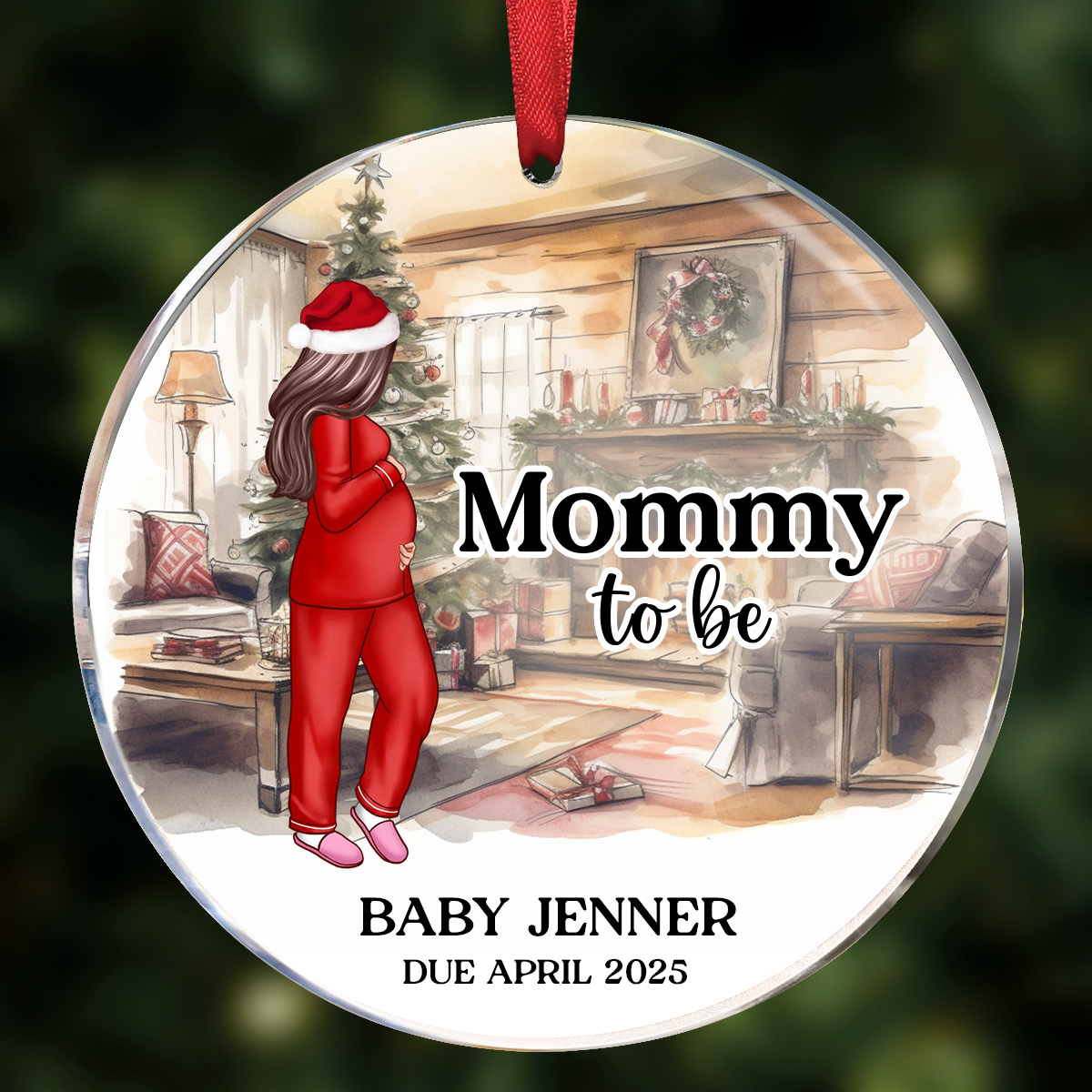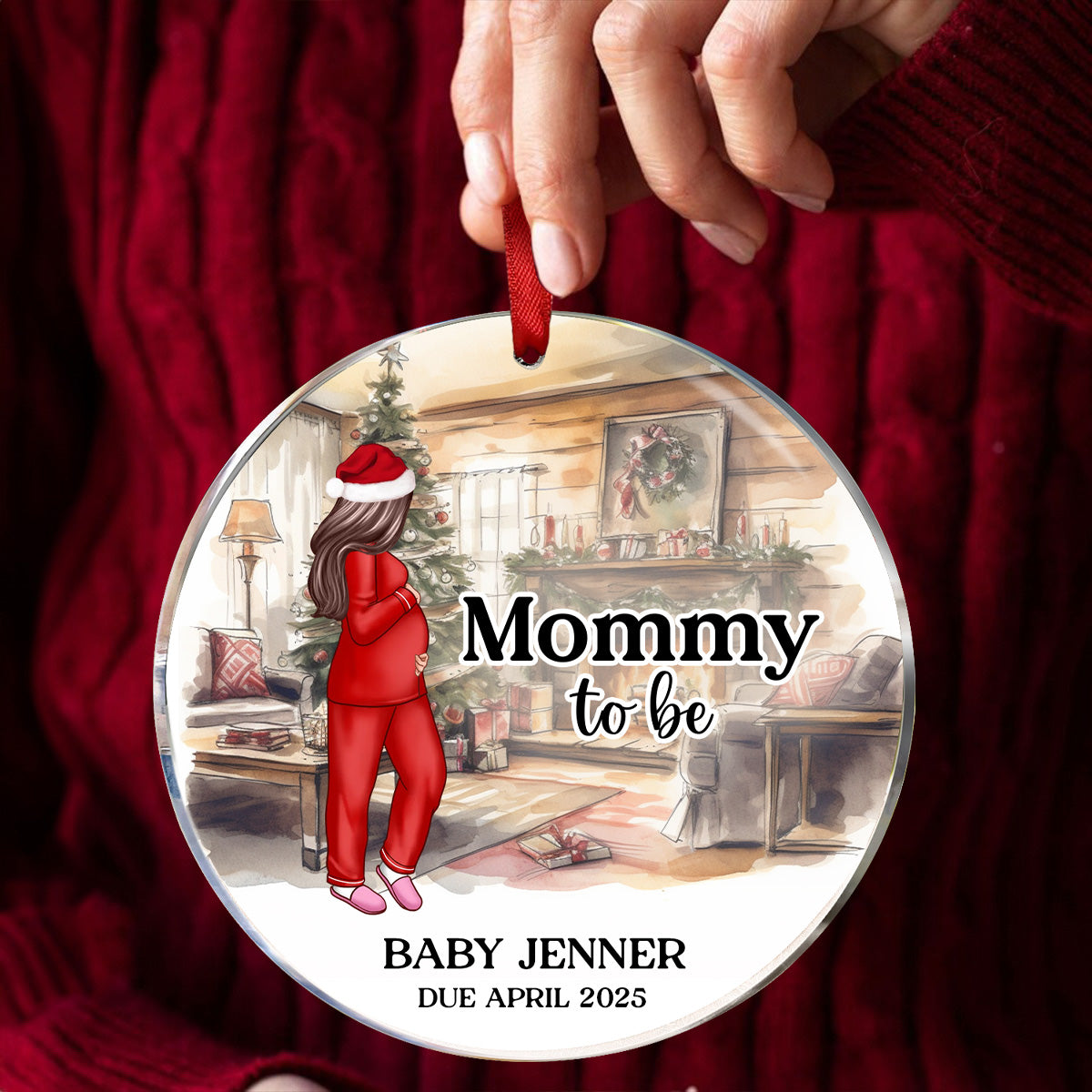 Pregnant Mom Baby Bump's First Christmas 2024 Ornament, Personalized Gifts Family, Pregnant Ornament, Baby Bump Christmas Ornament