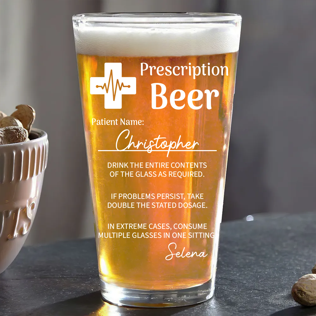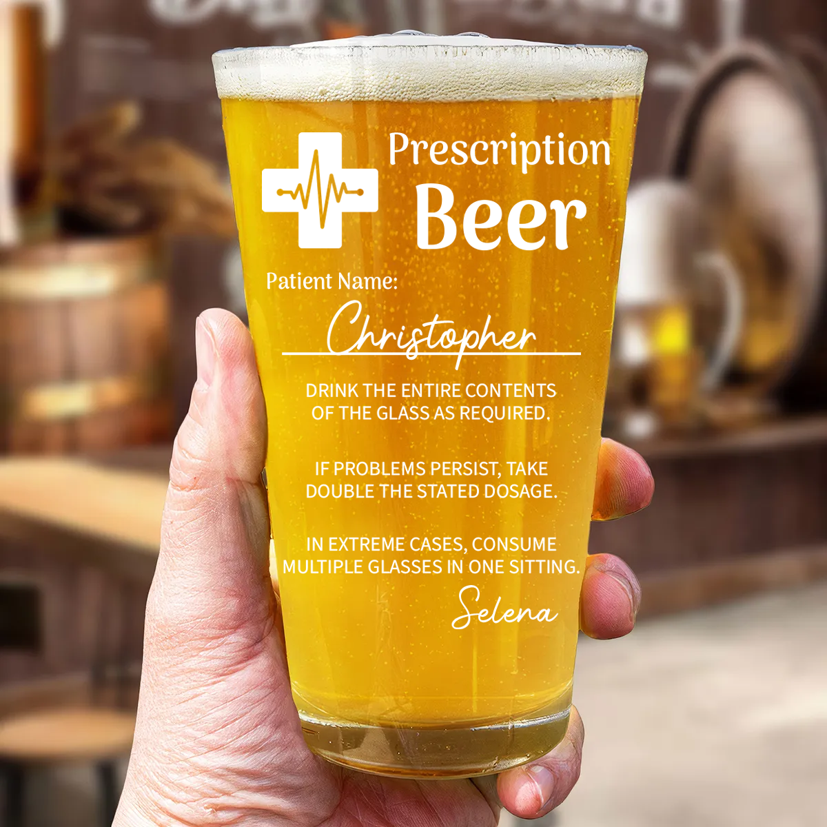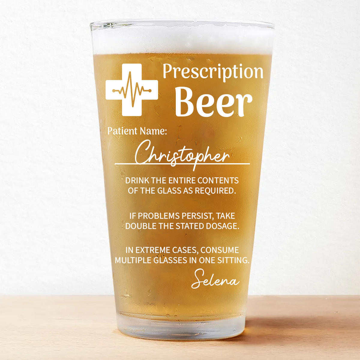 Prescription Beer Personalized Beer Glass, Funny Birthday Gift For Dad Brother Sister Bestie, Unique Father's Day Gift, Gift For Beer Lover