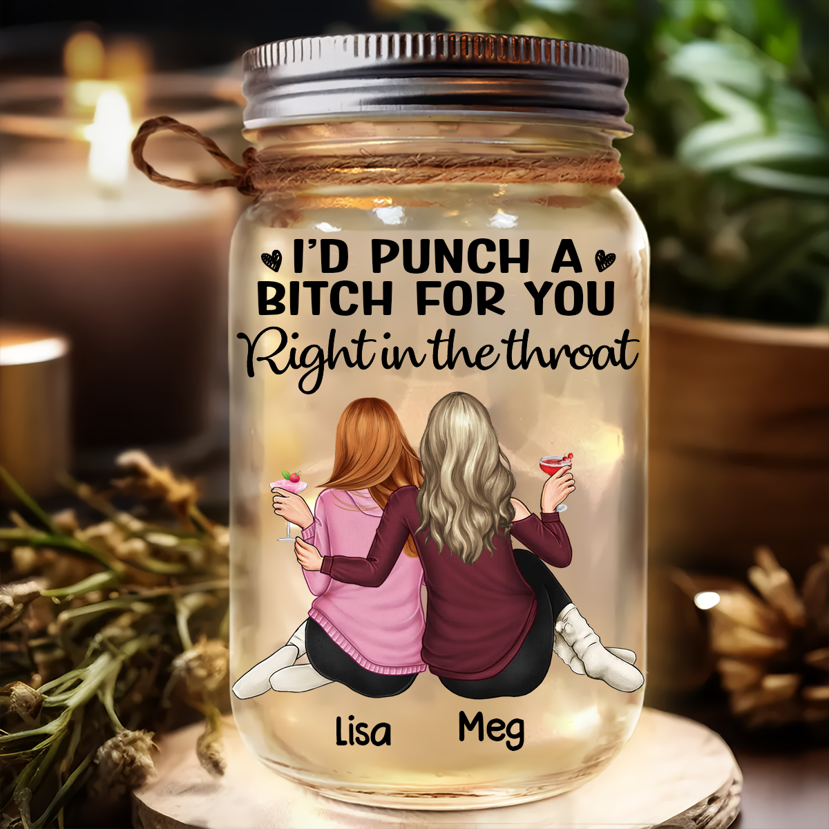 Right In The Throat Women Best Friends - Personalized Mason Jar Light