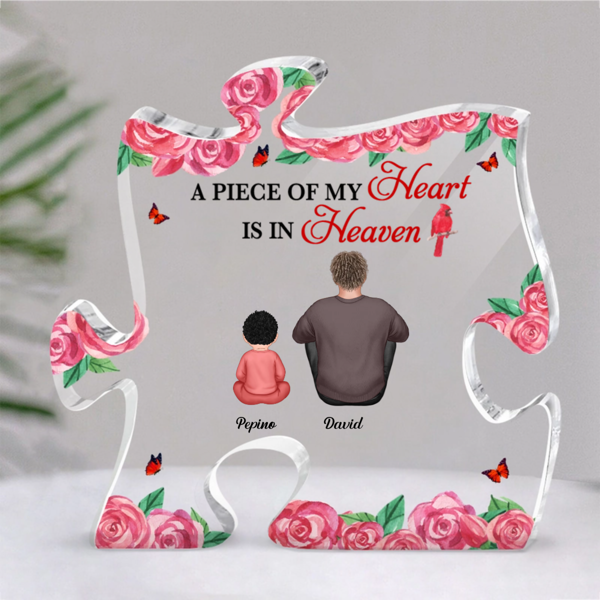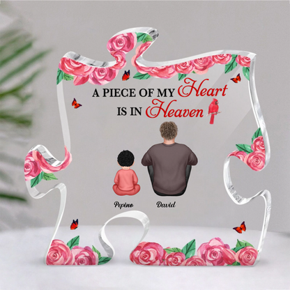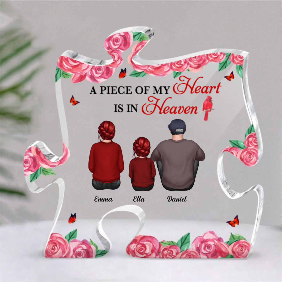 Roses Cardinal A Big Piece Of My Heart In Heaven Family Memorial Remembrance Gift Personalized Puzzle Acrylic Plaque