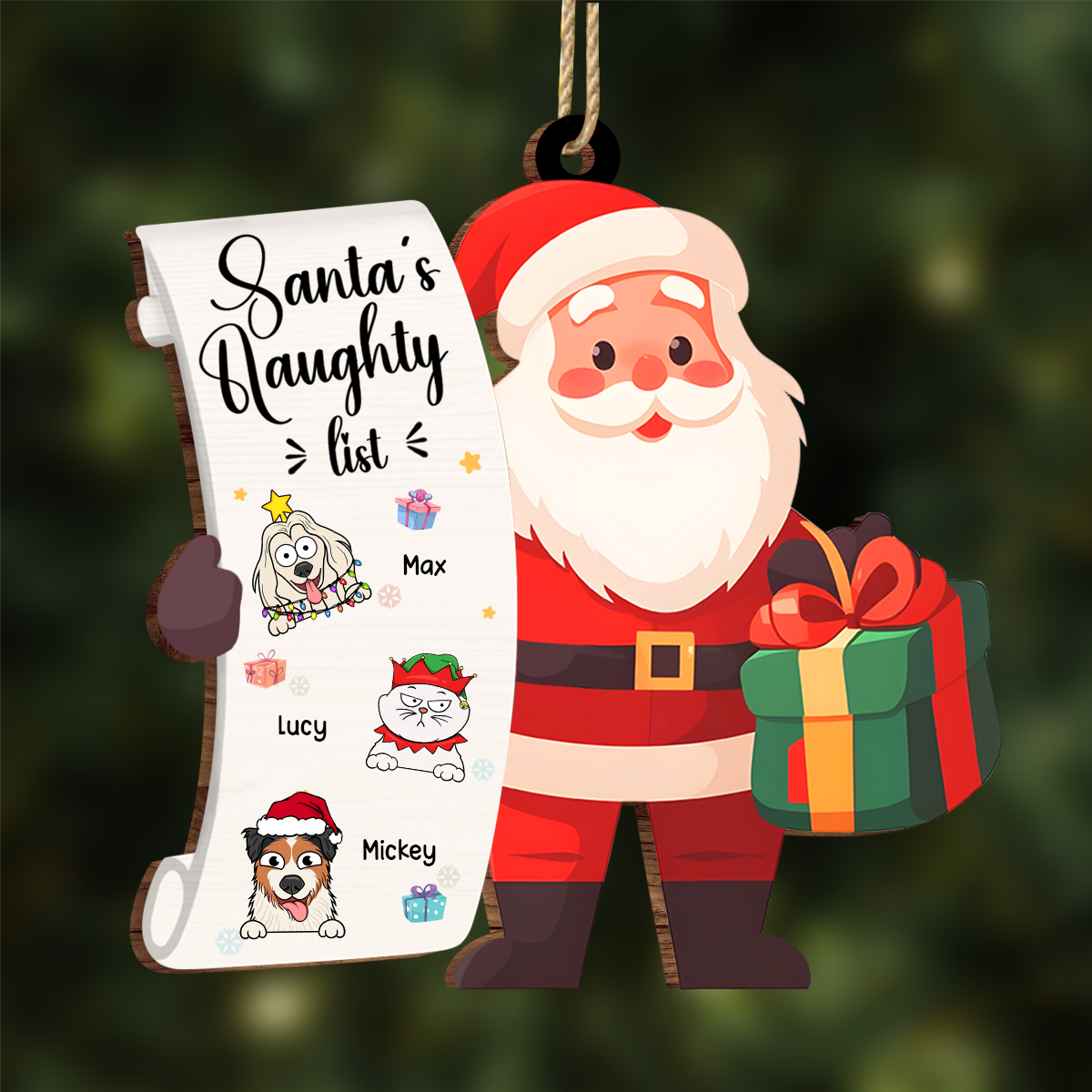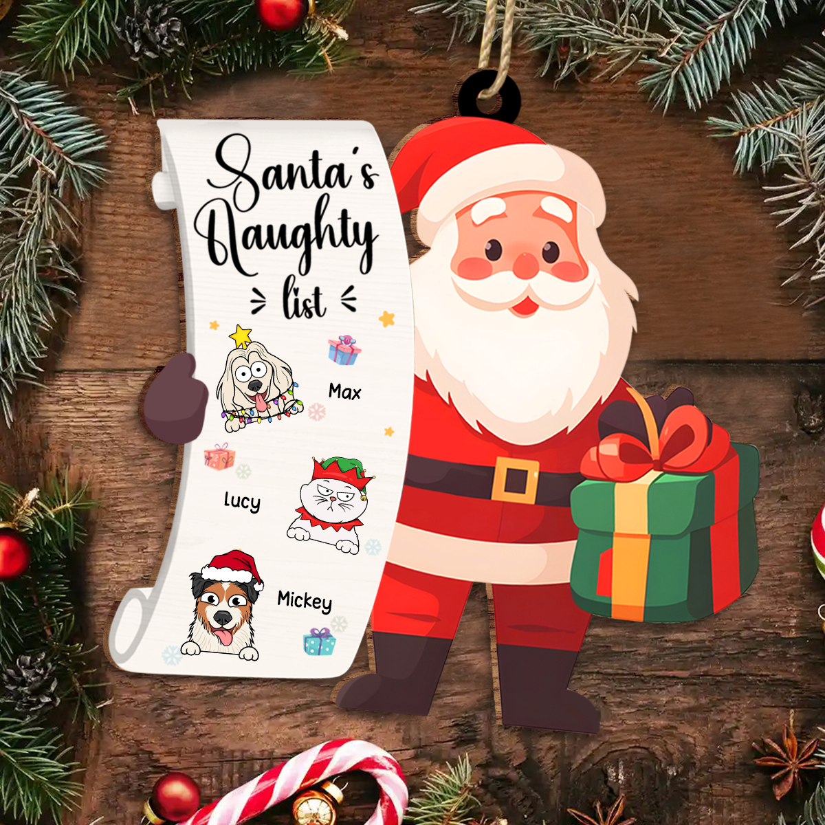 Santa's Naughty List Funny Christmas Cartoon Dogs Cats - Personalized Custom Shaped Wooden Ornament