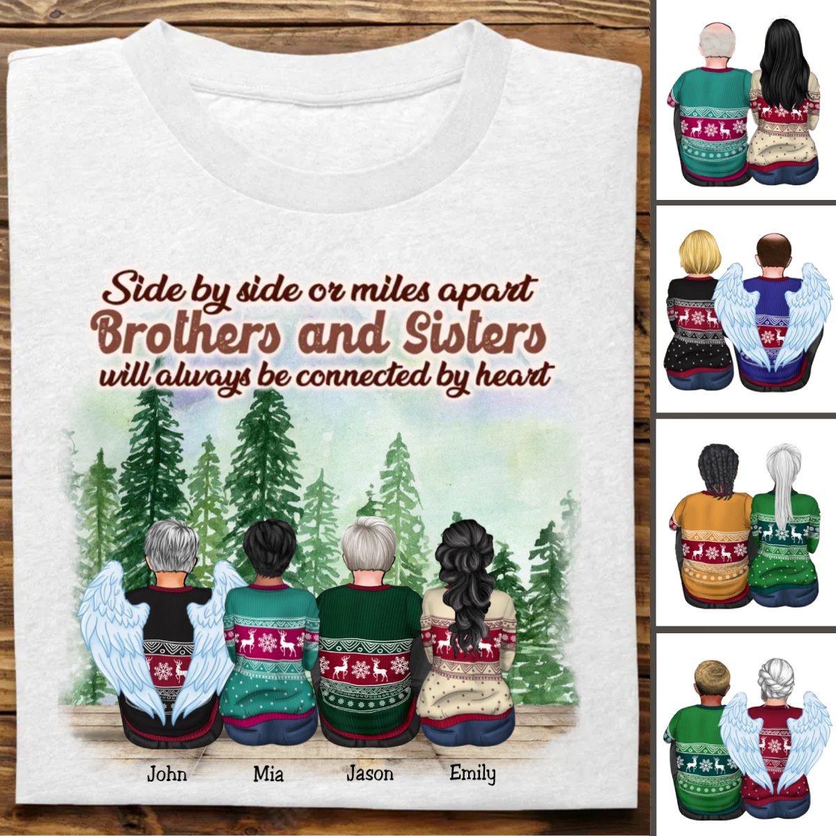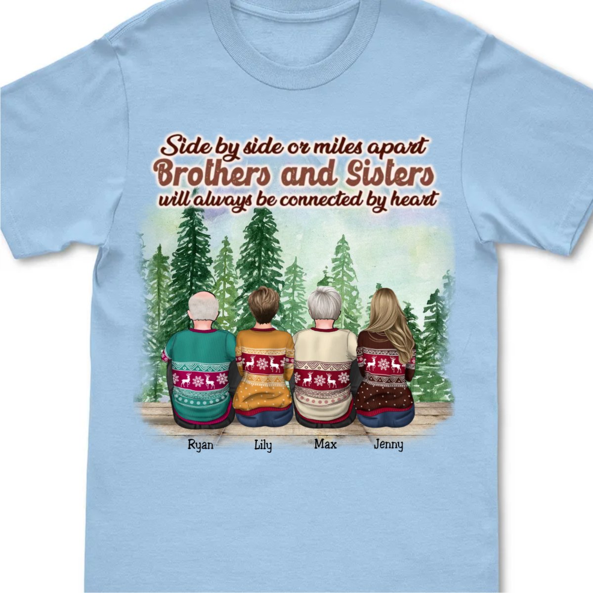 Brothers And Sisters - Side By Side Or Miles Apart Brothers And Sisters Will Always Be Connected By Heart - Personalized Unisex T-Shirt (Lake)