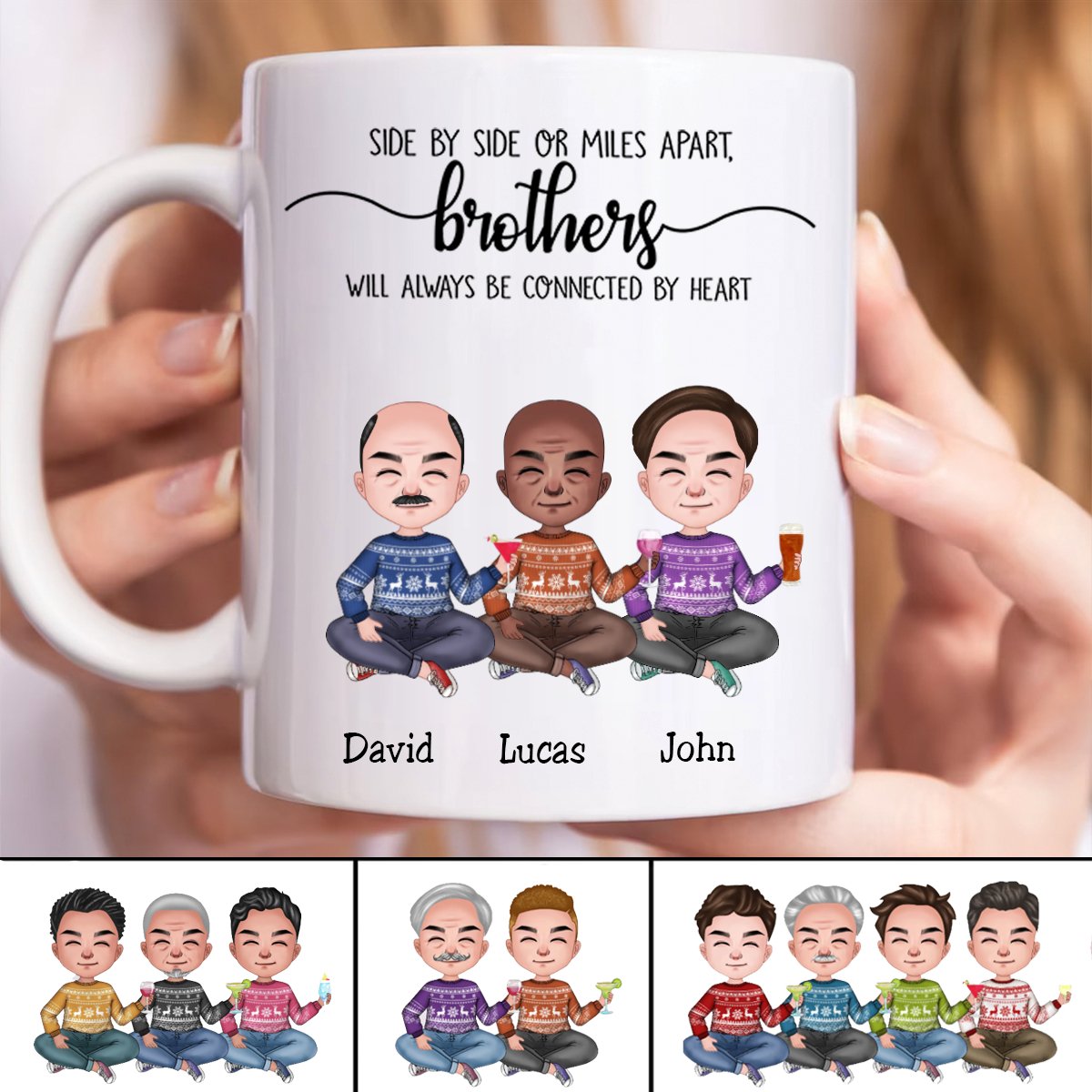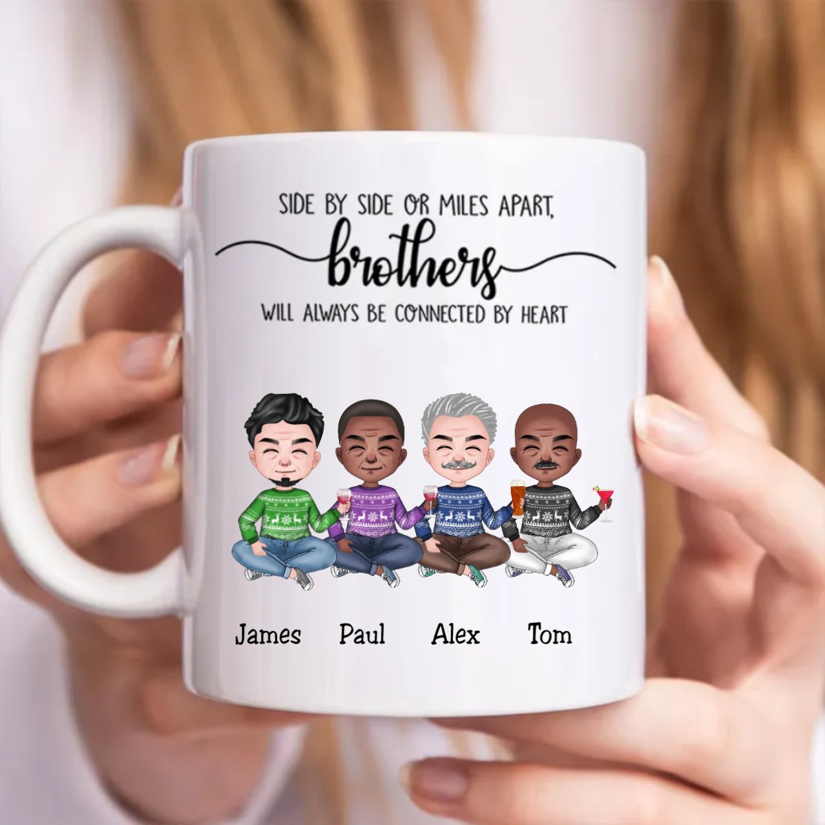 Side By Side Or Miles Apart, Brothers Will Always Be Connected By Heart - Personalized Mug
