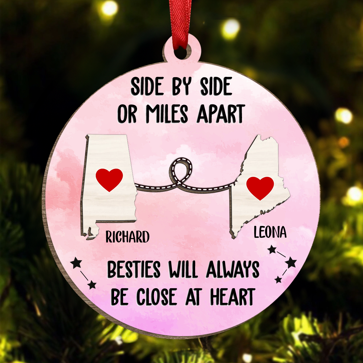 Side By Side Or Miles Apart - Christmas Gift For Family, BFF Best Friends, Siblings, Brothers, Sisters - Personalized Wooden Ornament