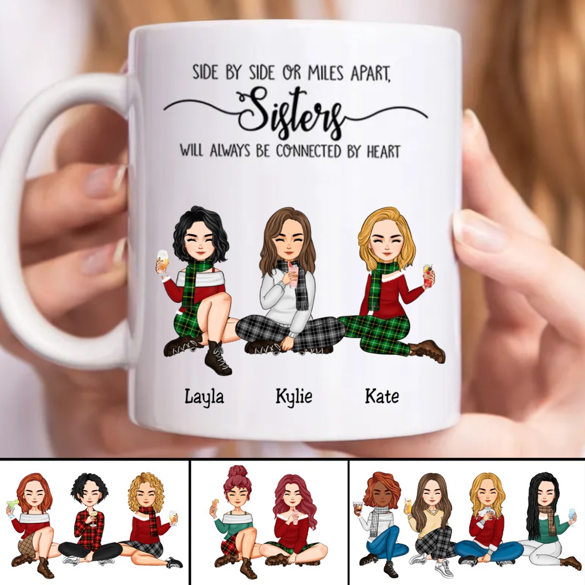 Side By Side Or Miles Apart, Sisters Will Always Be Connected By Heart - Personalized Mug (TB)