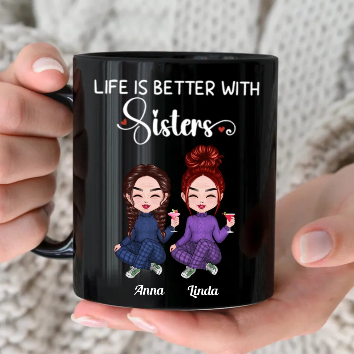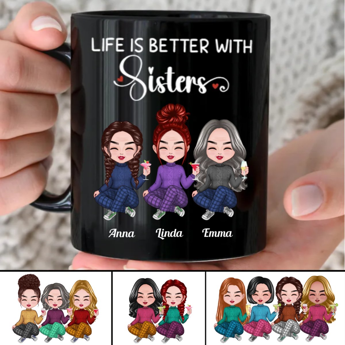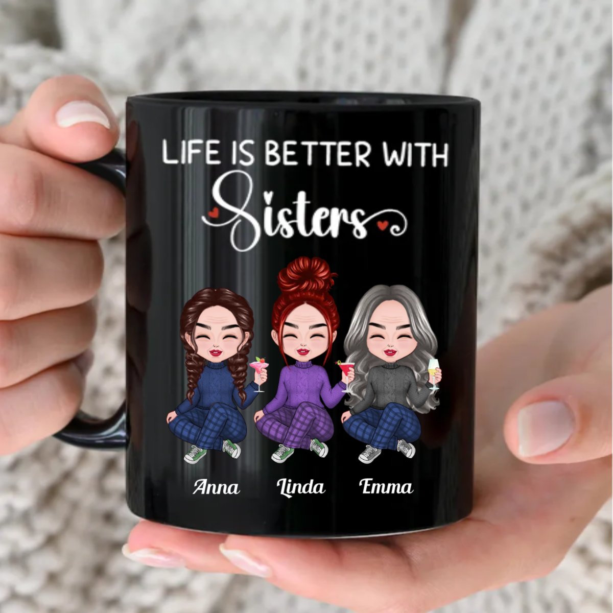 Sisters - Life Is Better With Sisters - Personalized Black Mug