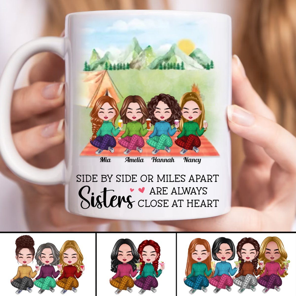 Sisters - Side By Side Or Miles Apart Sisters Are Always Close At Heart - Personalized Mug