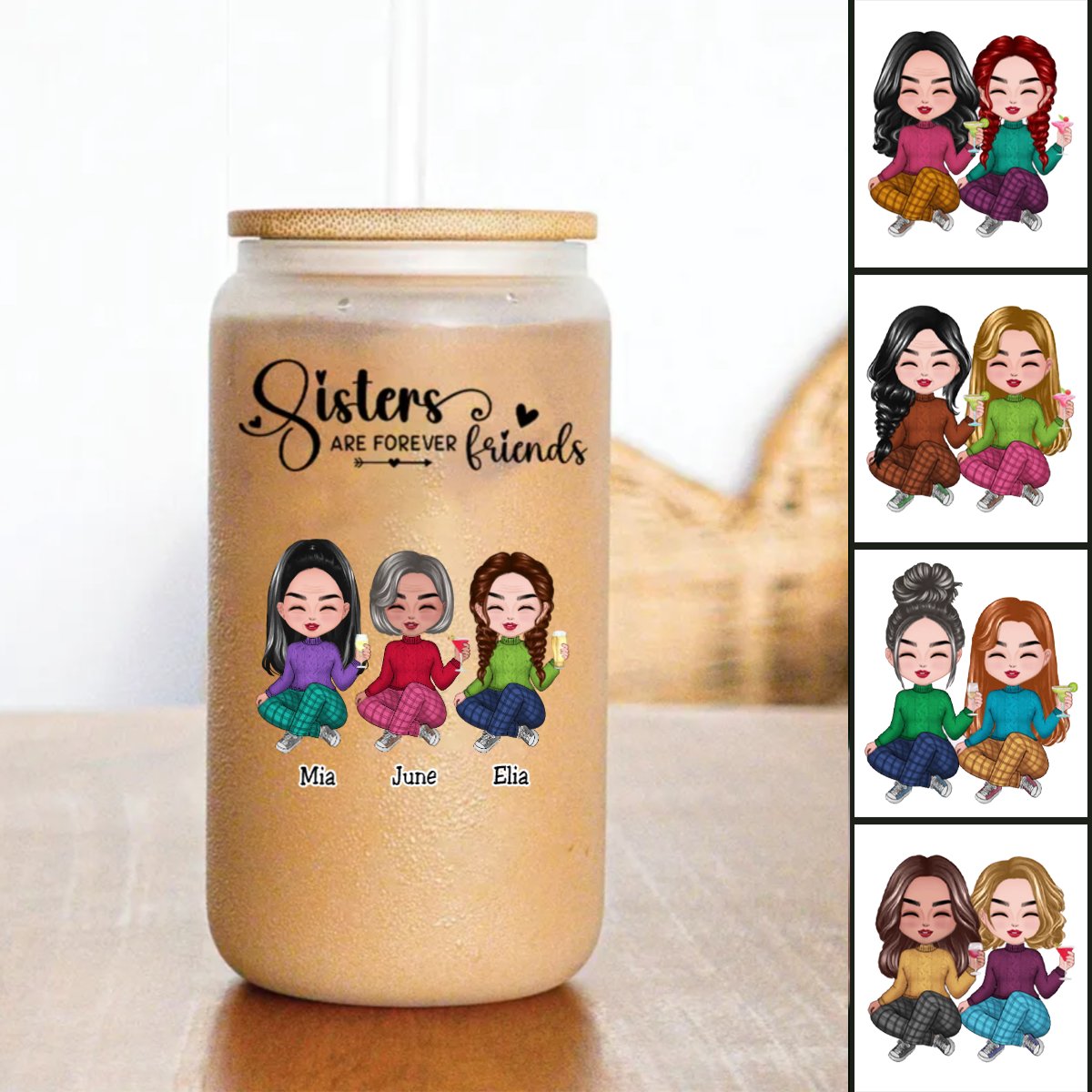 Sisters - Sisters Are Forever Friends - Personalize Glass Can (AA)