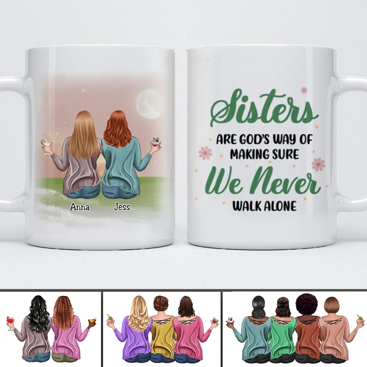 Sisters - Sisters Are God's Way Of Making Sure We Never Walk ALone - Personalized Mug (Ver 10)