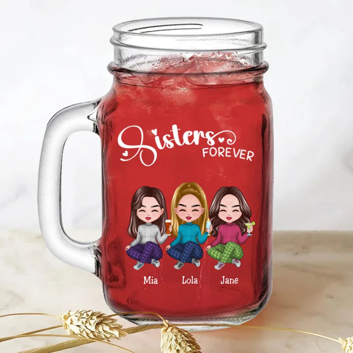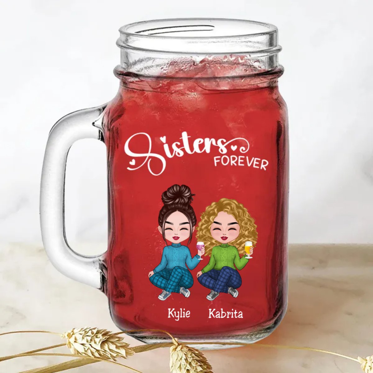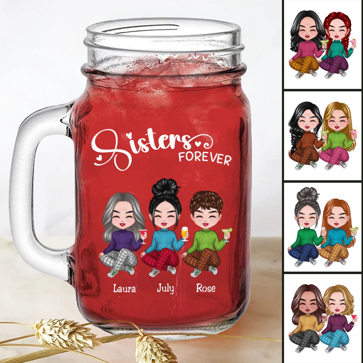 Sisters - Sisters Forever - Personalize Drinking Jar (White)