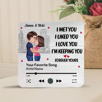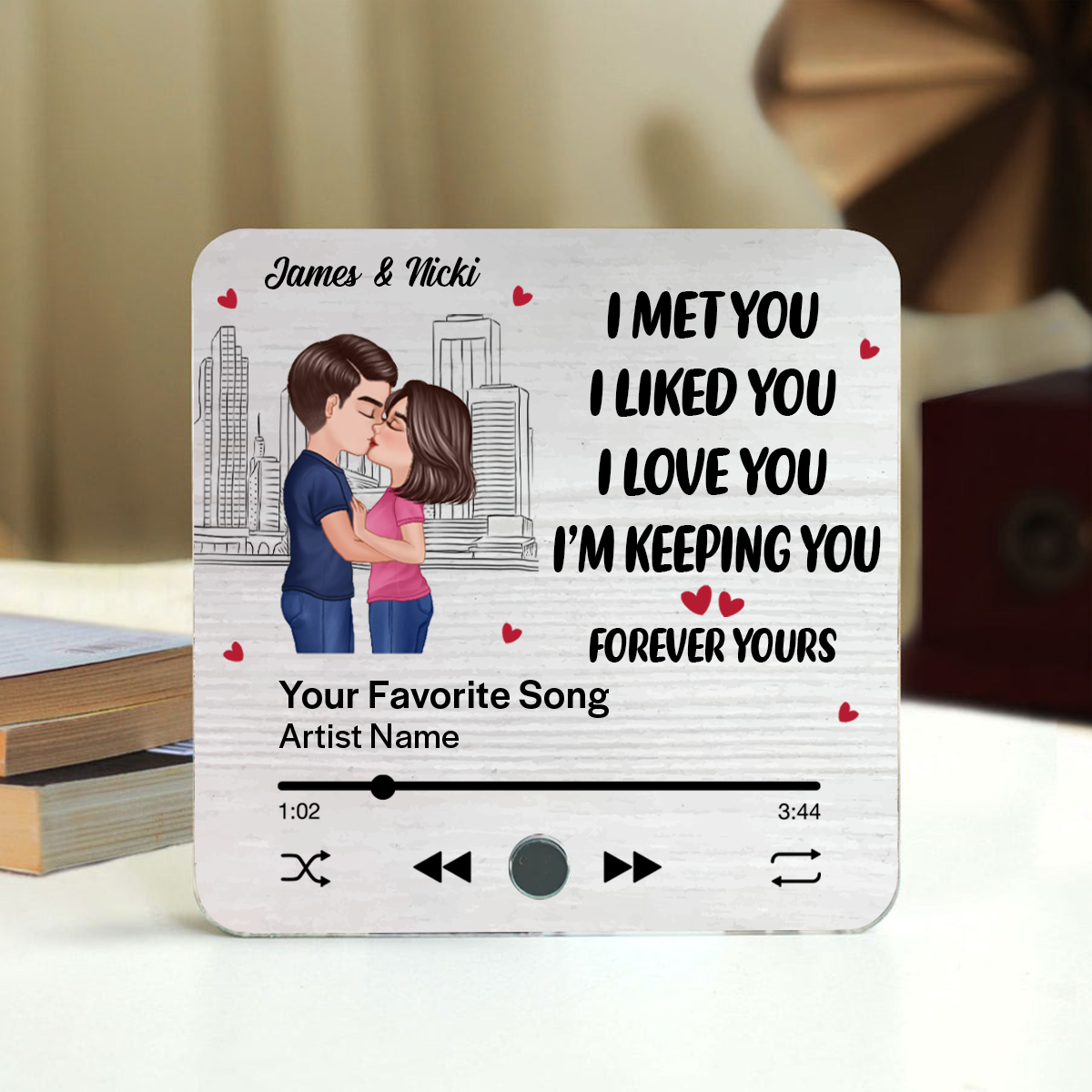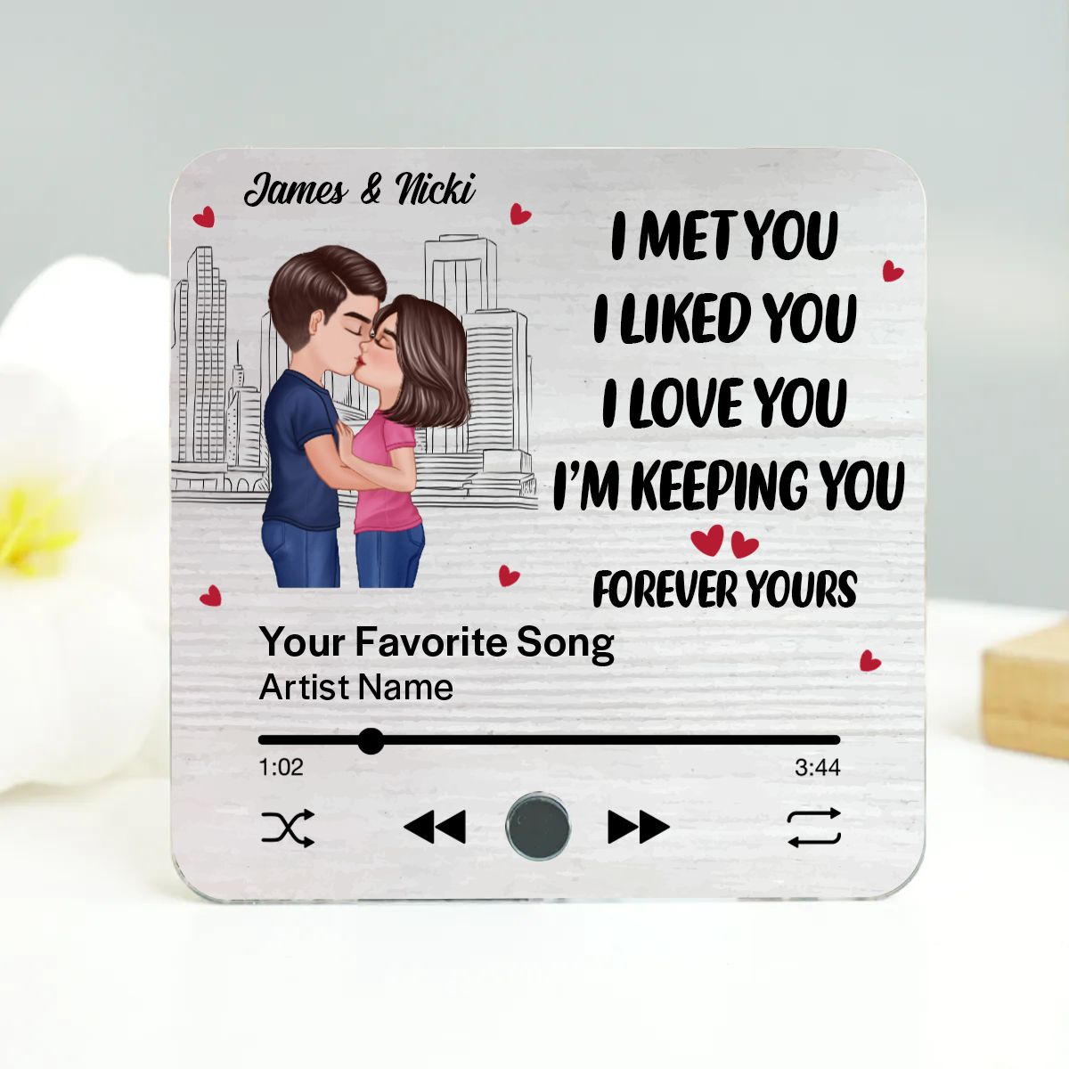 Skyline Couple Kissing I Met You Personalized Music Fridge Magnet, Heartfelt Gift For Couple, For Him, For Her, Boyfriend, Girlfriend, Husband, Wife
