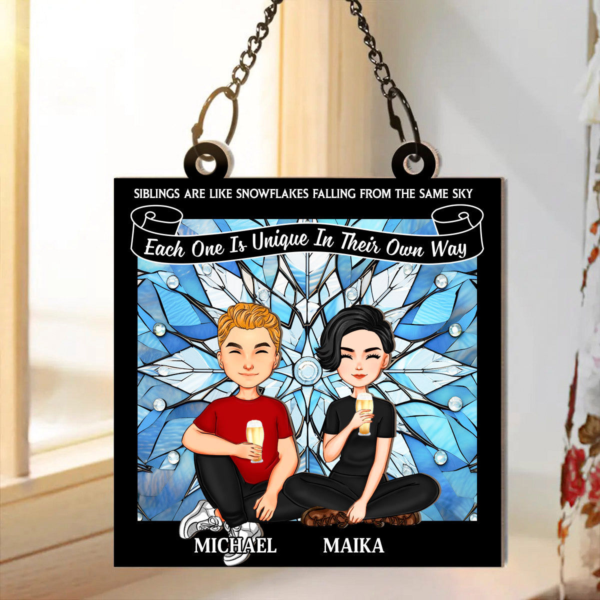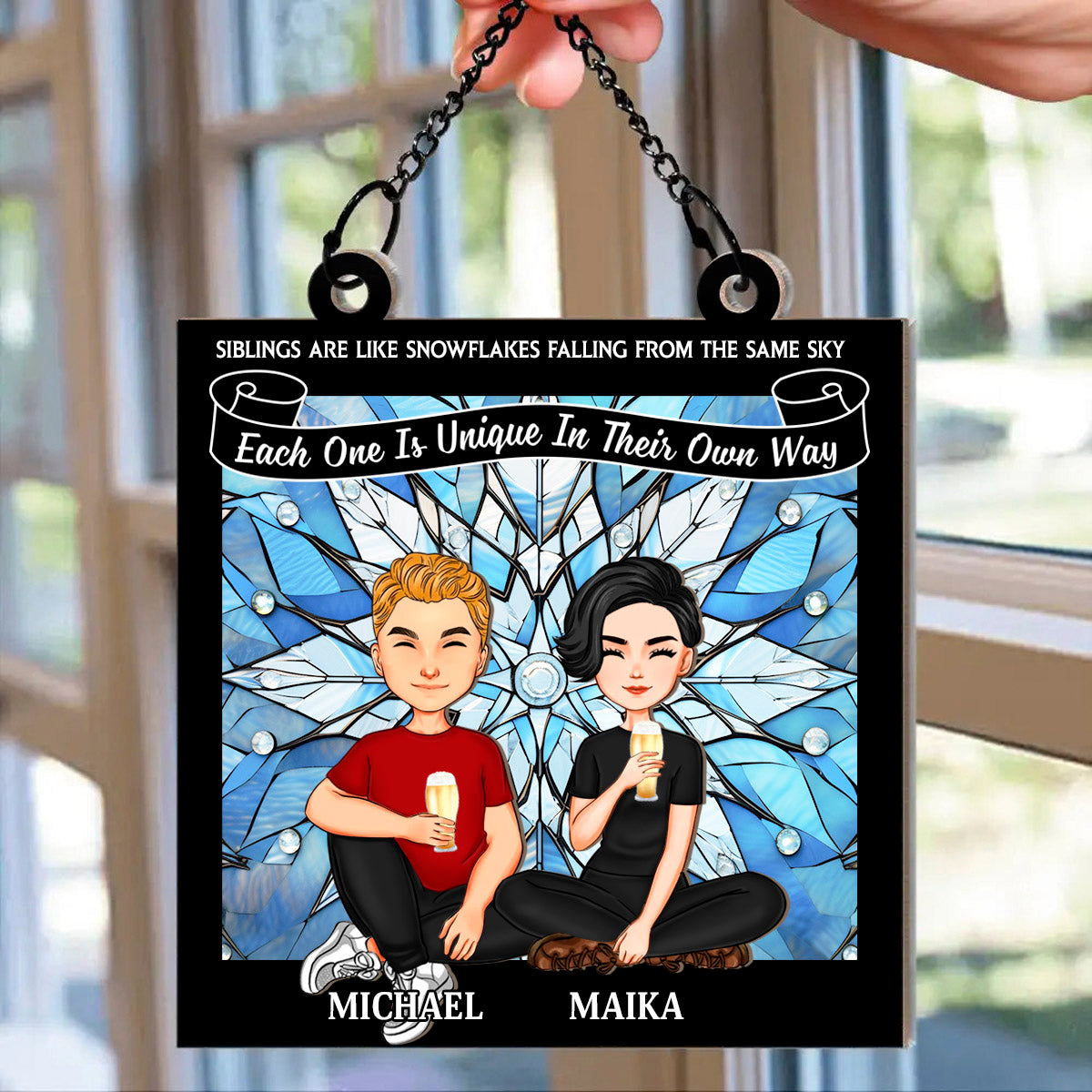 Snowflakes Falling From The Same Sky - Personalized Window Hanging Suncatcher Ornament