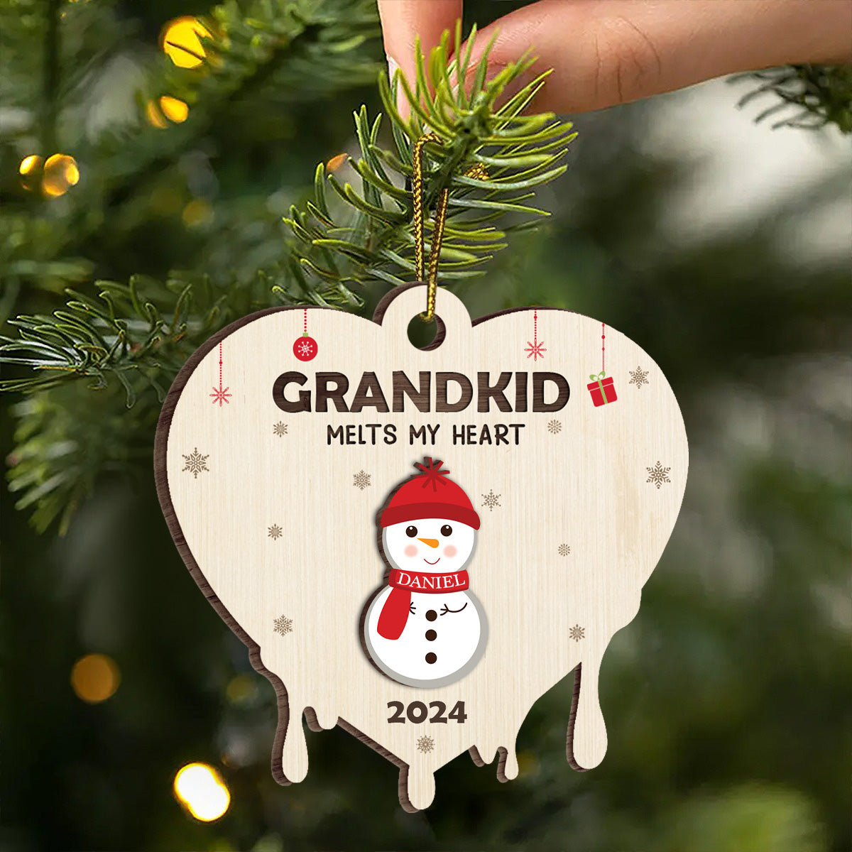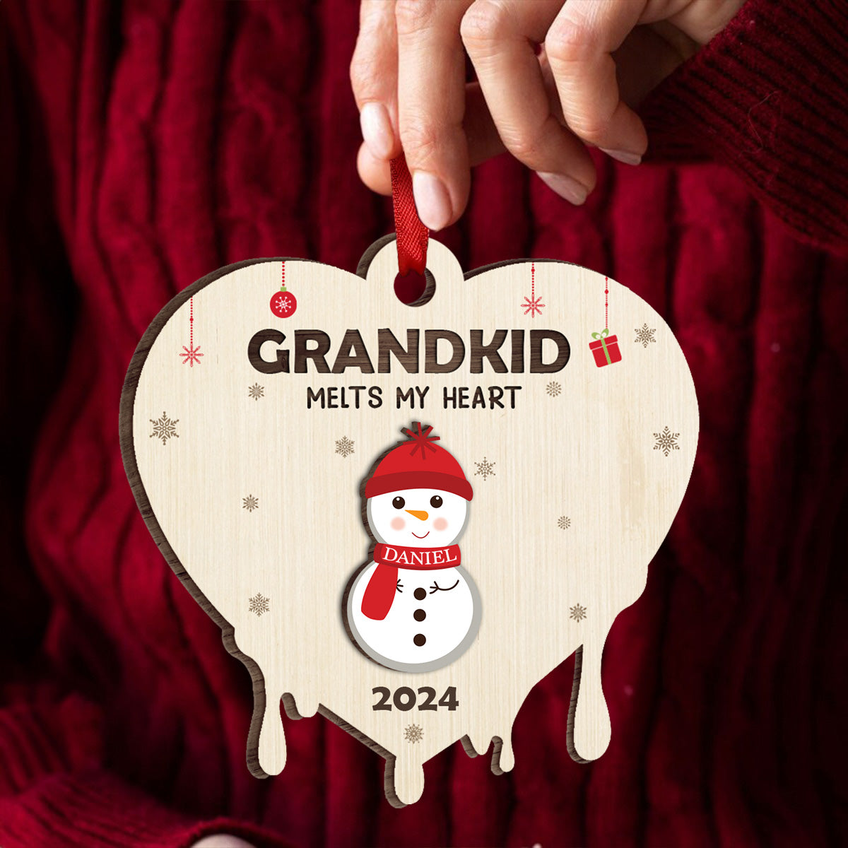 Snowman Grandkids Melt My Heart - Personalized Wooden Ornament
