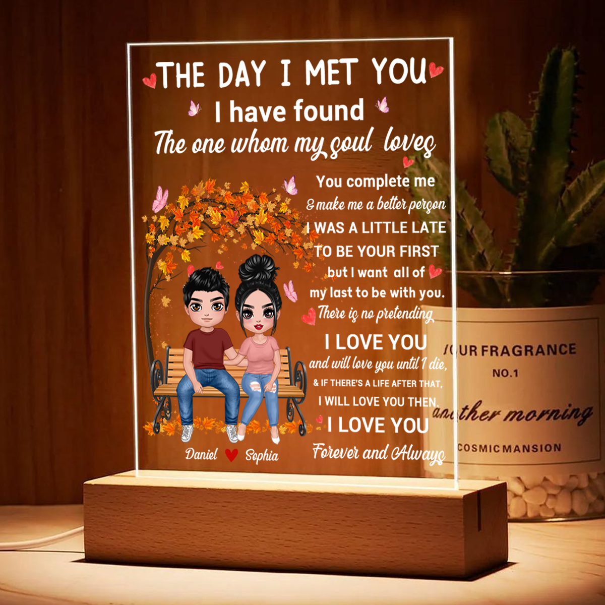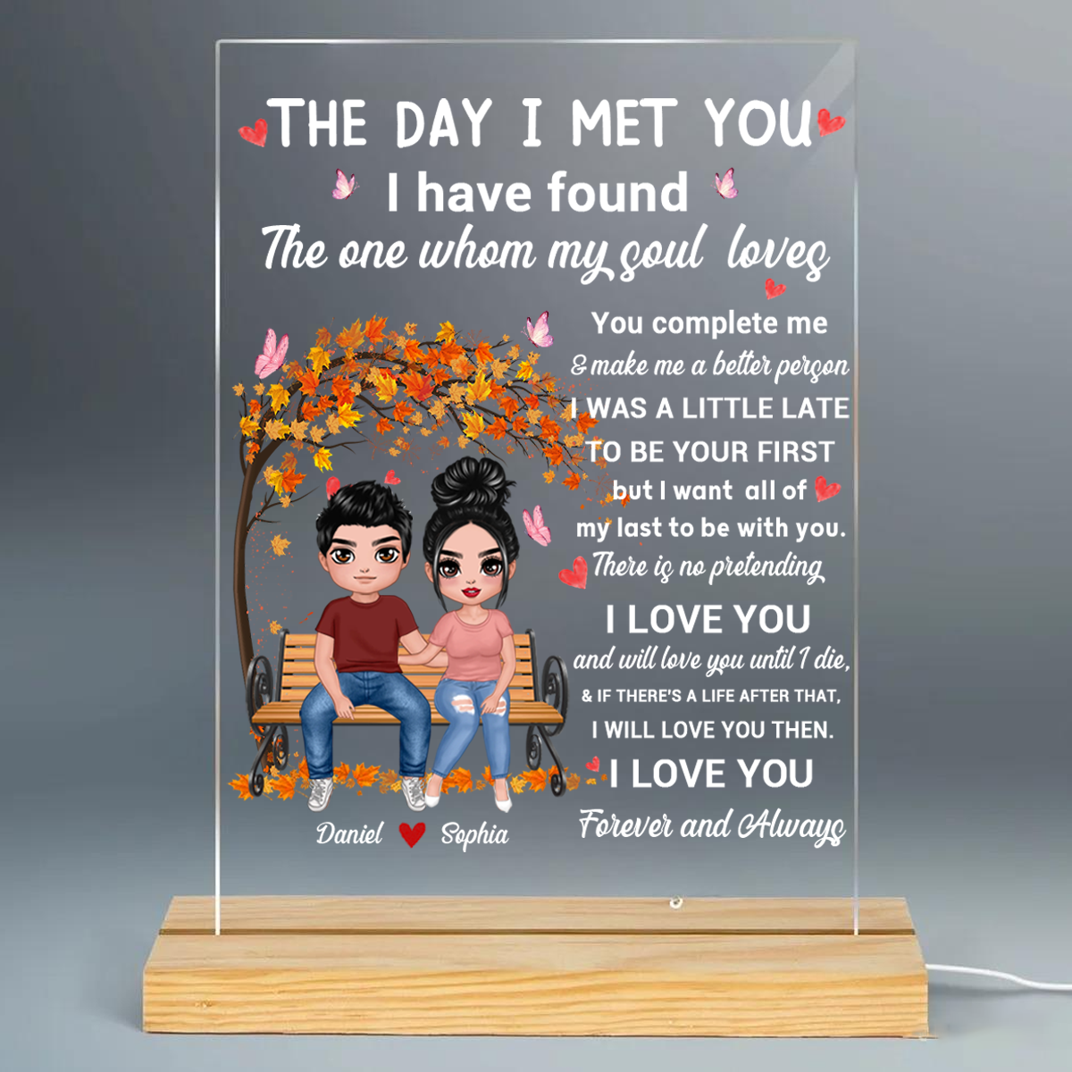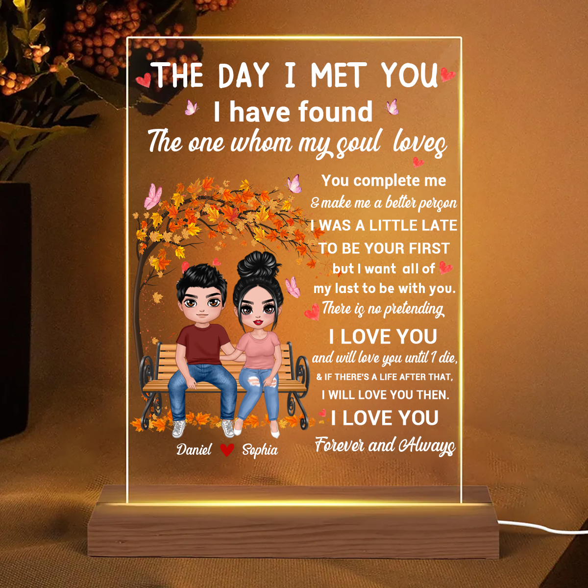 The Day I Met You Couple Personalized Plaque LED Night Light, Acrylic LED Lamp, Valentine‘s Day Gift For Him, For Her
