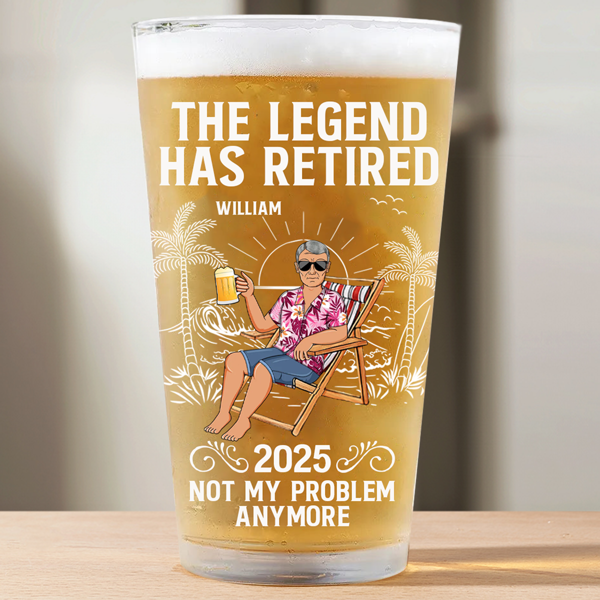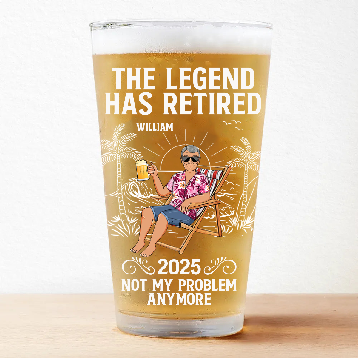 The Legend Has Retired Not My Problem Anymore - Personalized Beer Glass