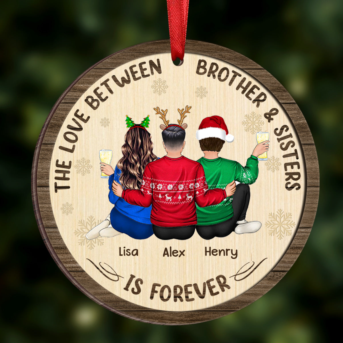 The Love Between Brothers And Sisters Is Forever - Personalized Wooden Ornament
