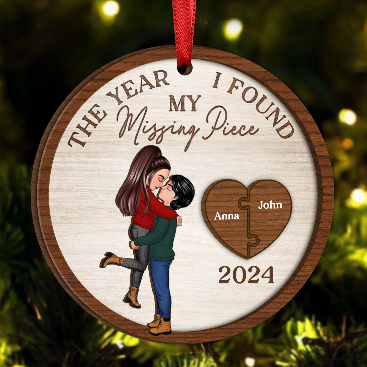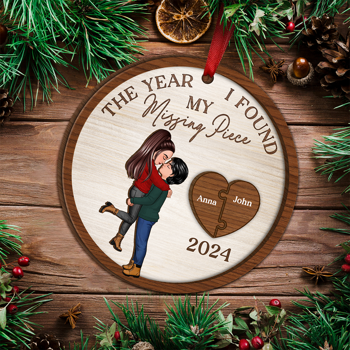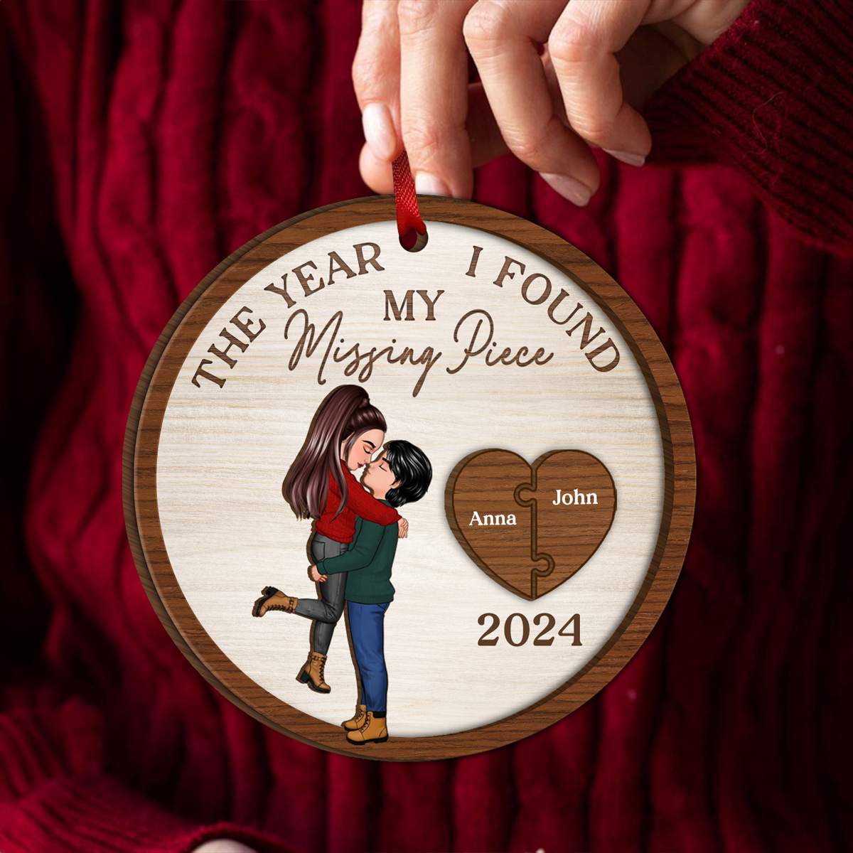 The Year I Found My Missing Piece Cartoon Kissing Couples - Personalized Wooden Ornament