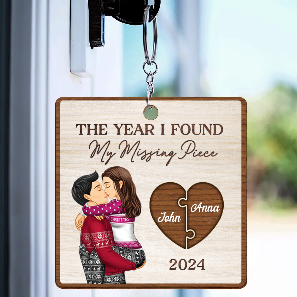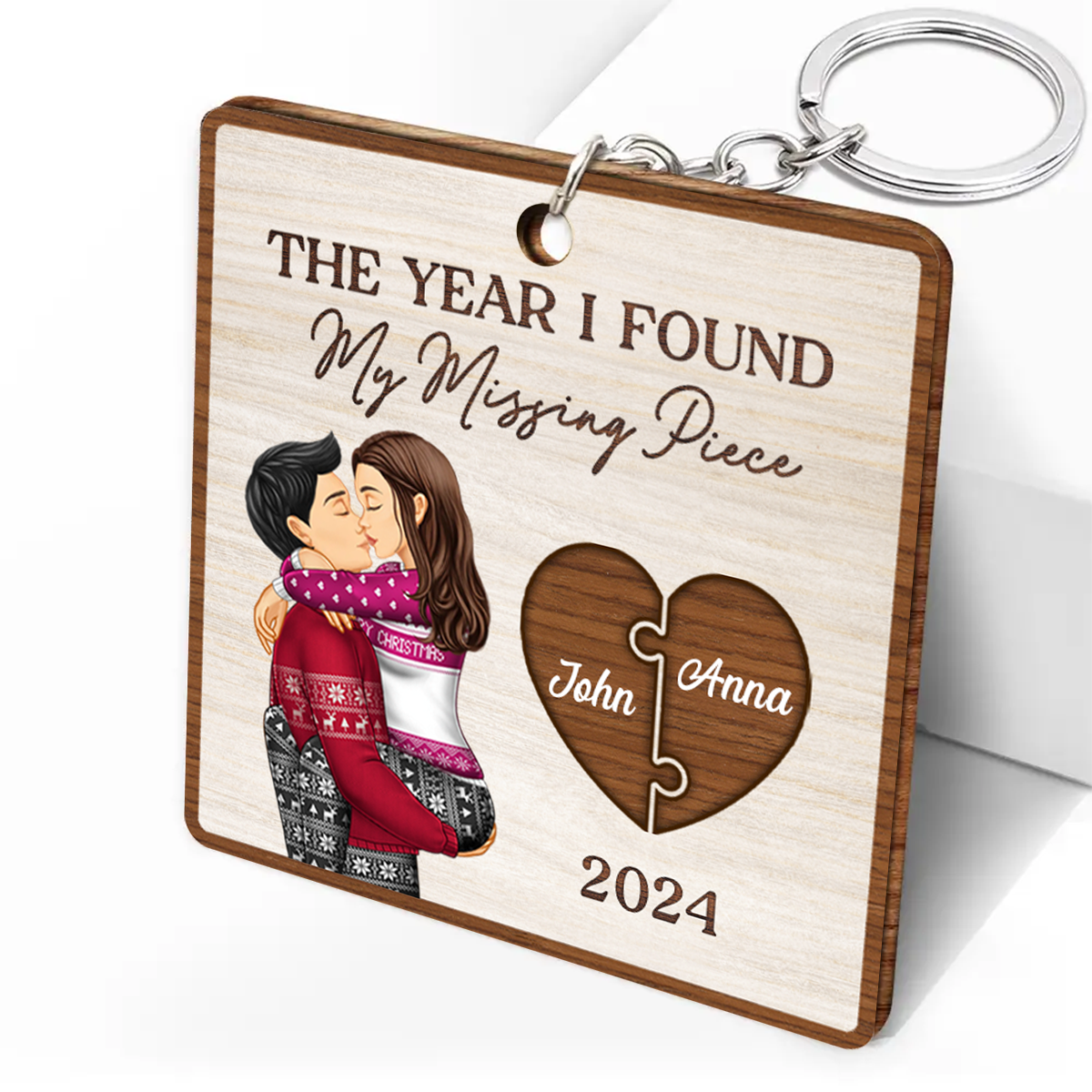 The Year I Found My Missing Piece Kissing Couples - Personalized Wooden Keychain