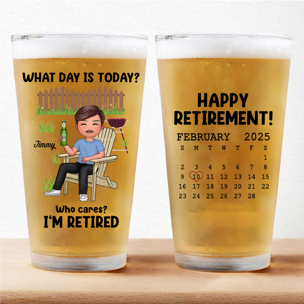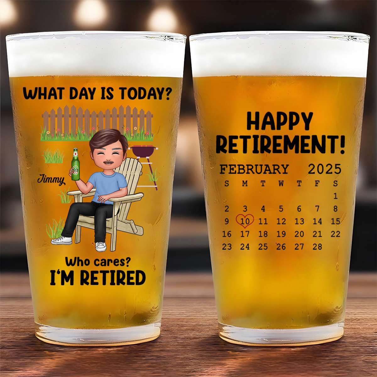 What Day Is Today Calendar Personalized Beer Glass, Retirement Gift