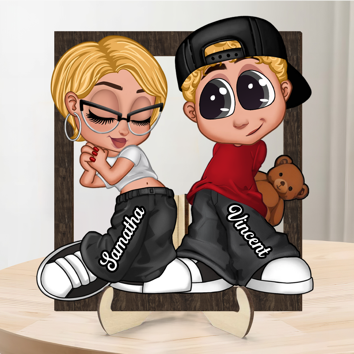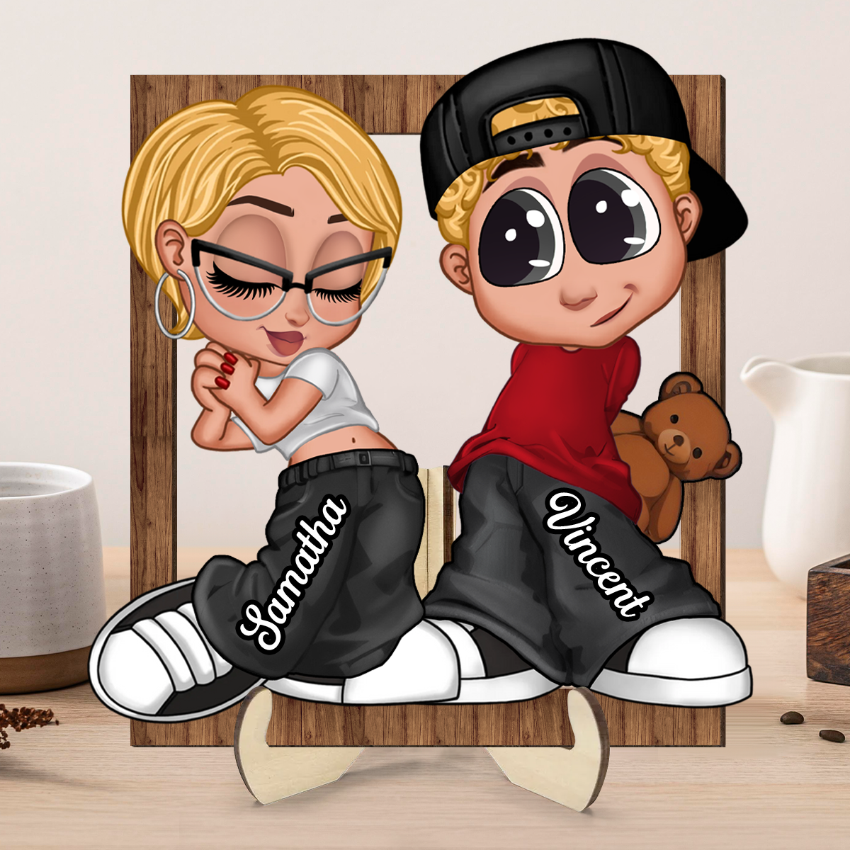 Y2K Couple Frame Personalized 2-layer Wooden Plaque, Valentine's Day Gift for Him, Gift for Her