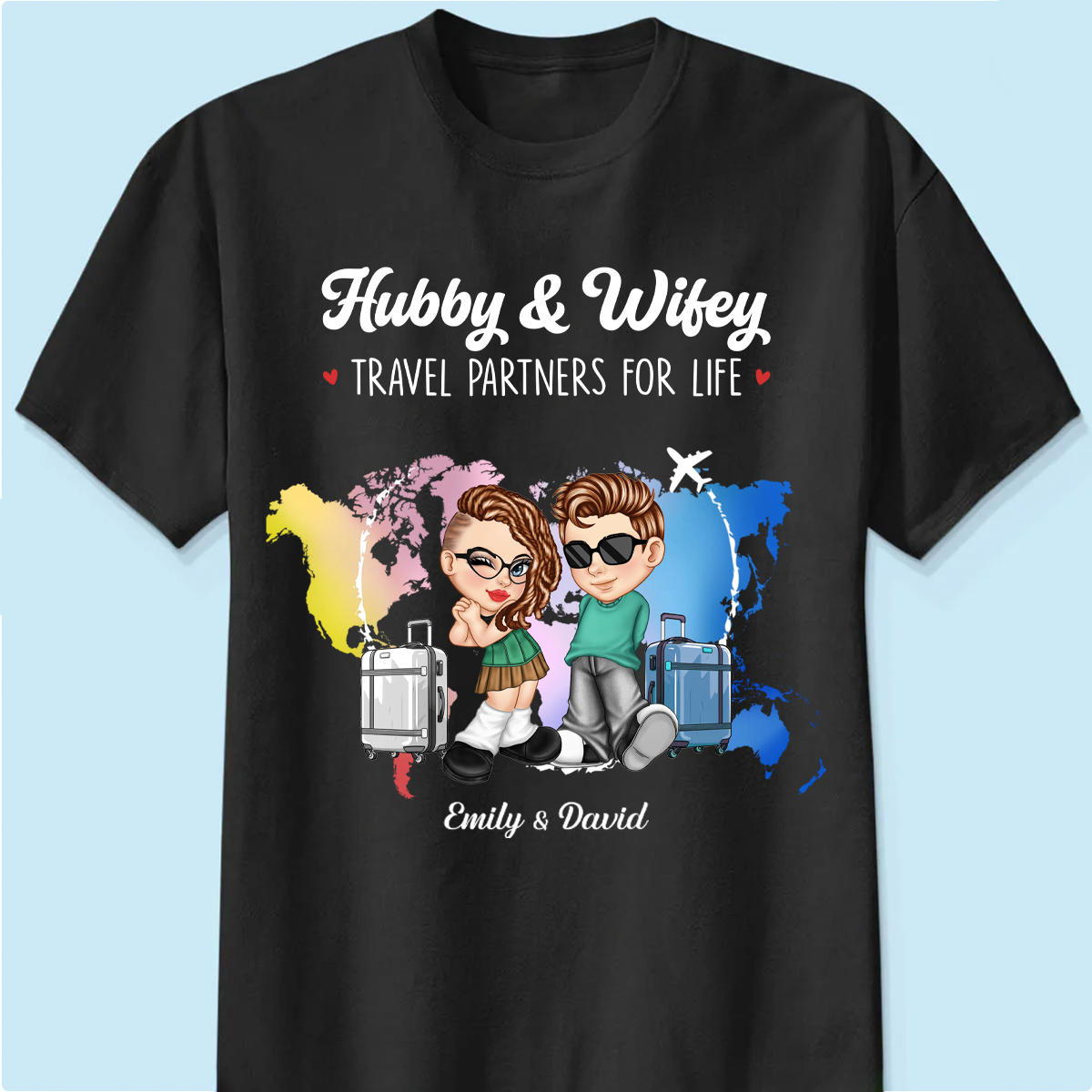 Y2K Couple Hubby & Wifey Travel Partners For Life - Personalized T Shirt
