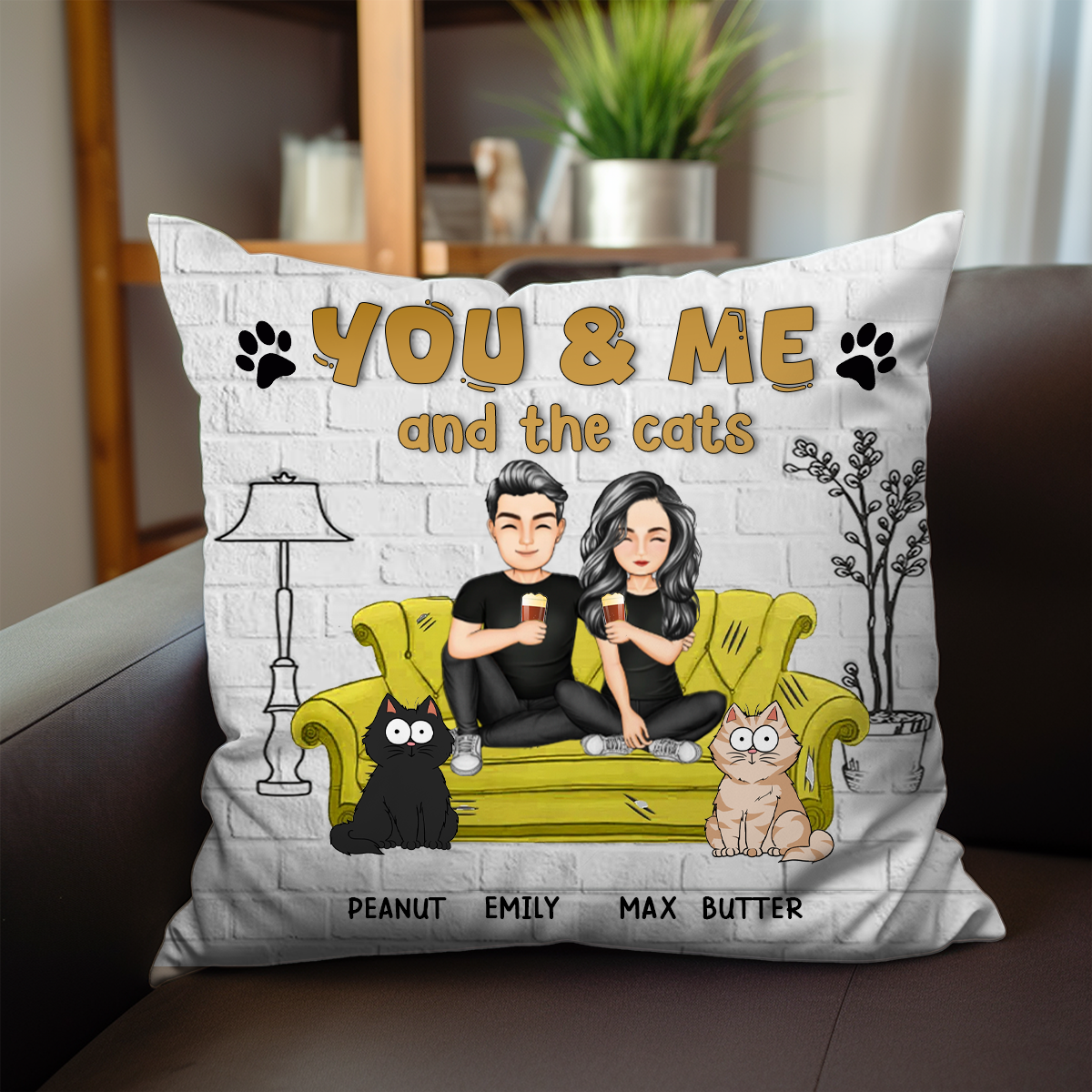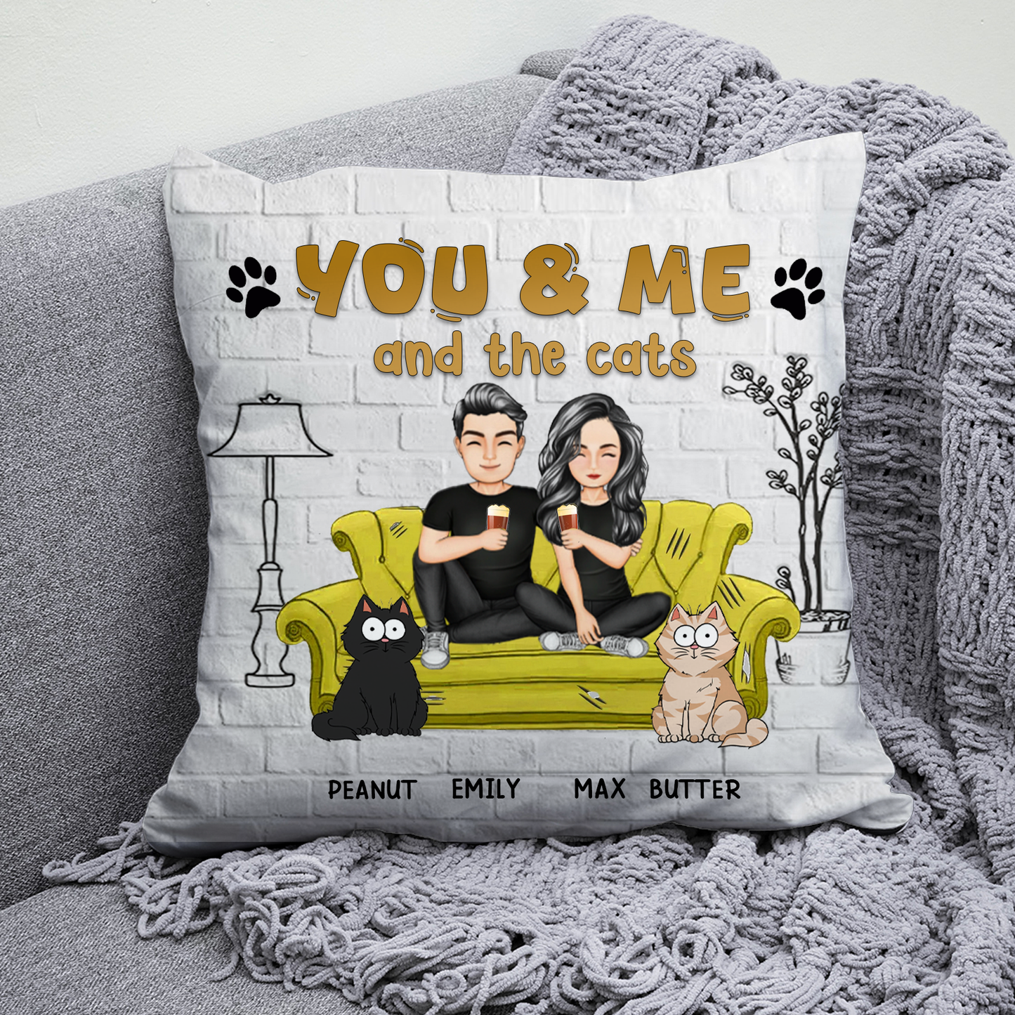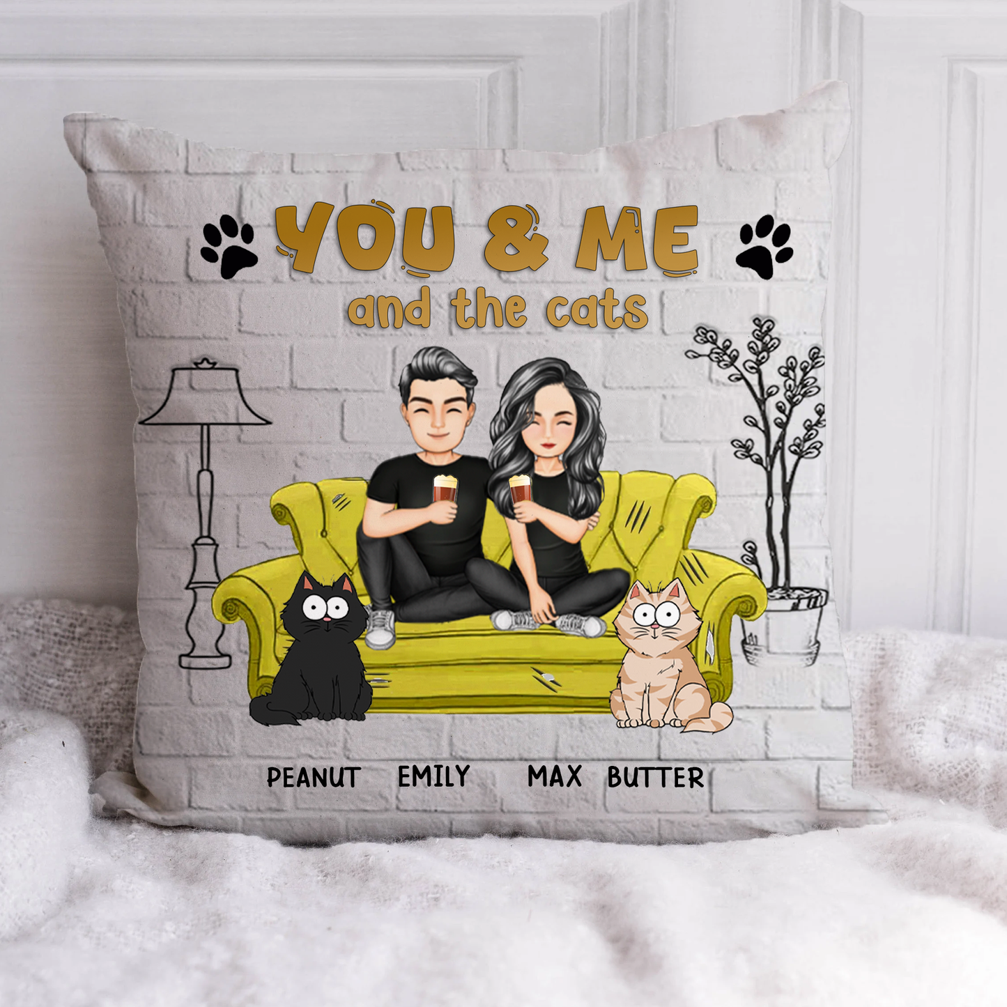 You And Me And The Cats - Gift For Cat Lovers - Personalized Pillow