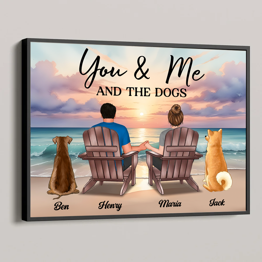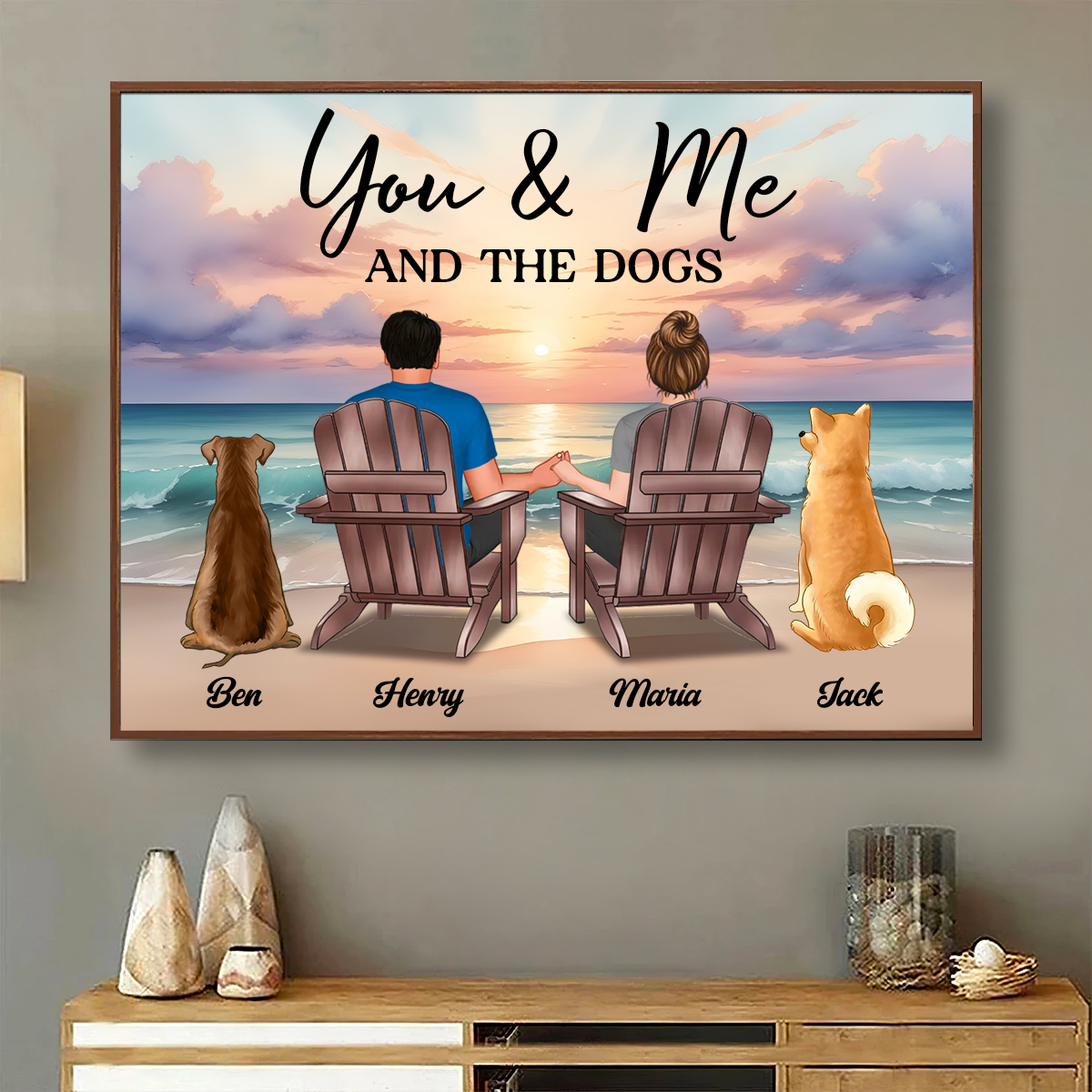 You Me And The Dogs Cats Couple Realistic Beach Landscape Personalized Poster, Birthday Gift, Anniversary Gift, Unique 2024 Christmas Gift For Him, For Her